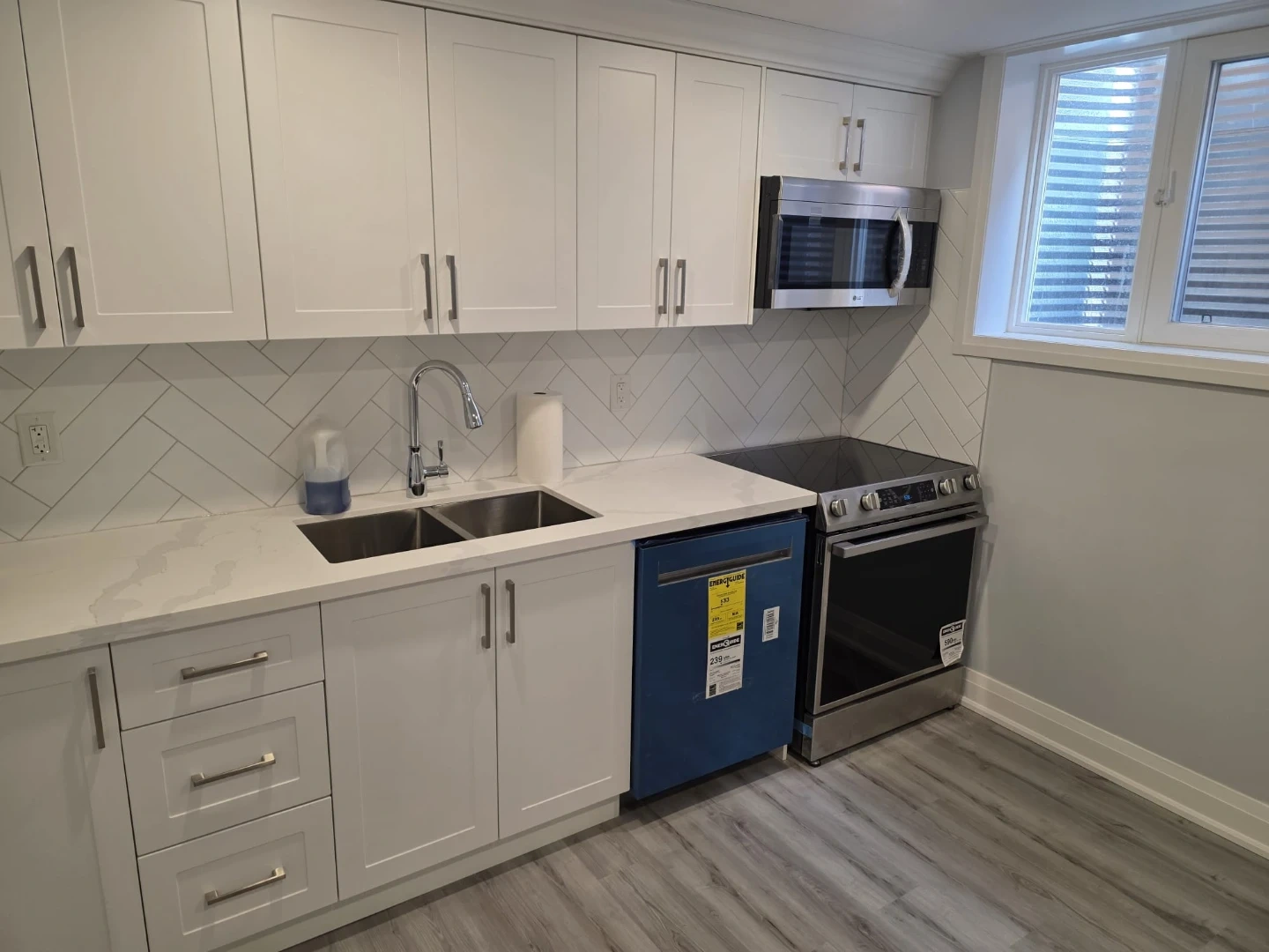 New stainless steel kitchen appliances incl dishwasher and over range microwave