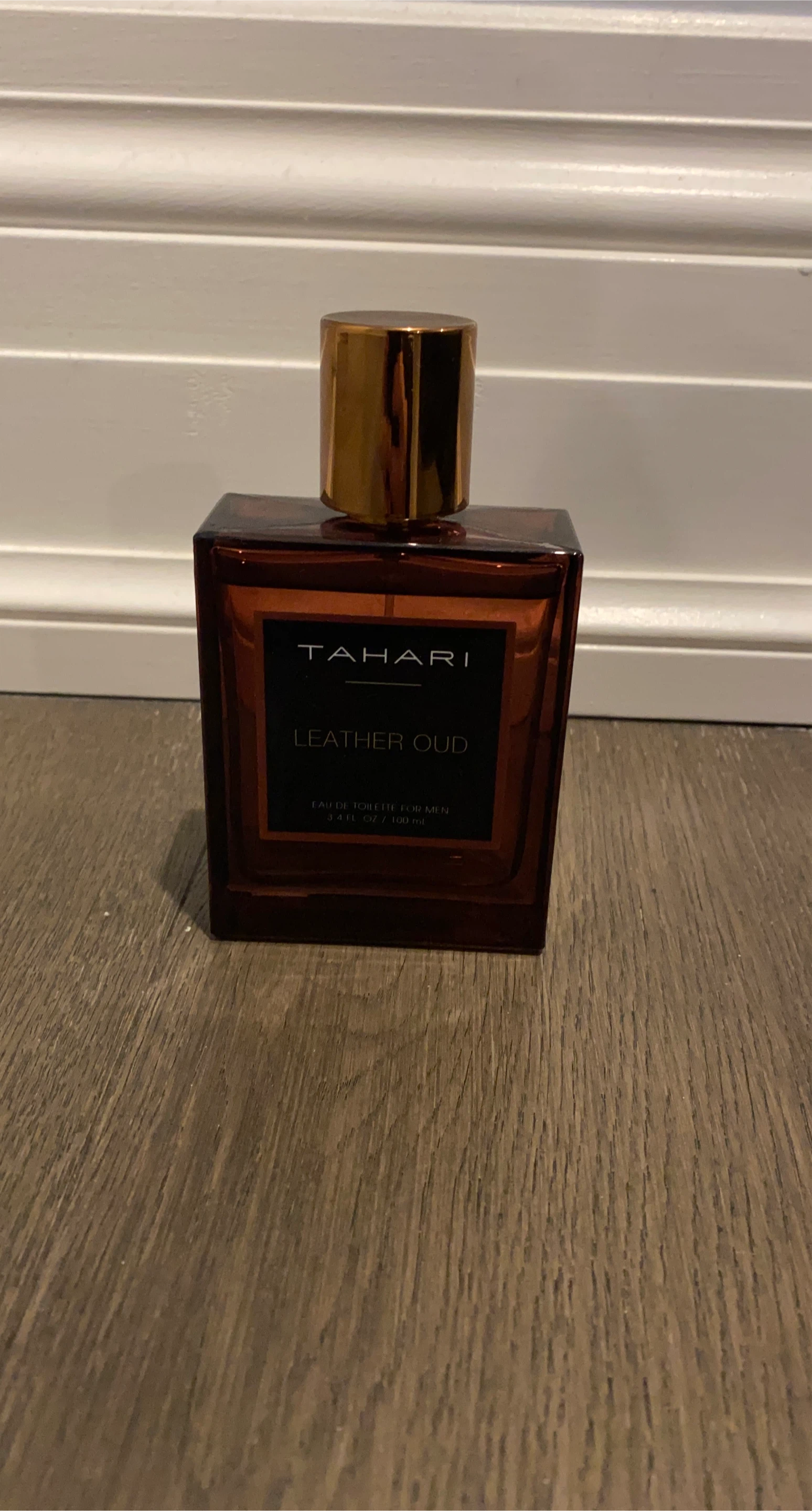 5Selling a bottle of Tahari Leather Oud Eau de Toilette for men. It contains 3.4 fl oz / 100 ml of product. The bottle is in great condition!