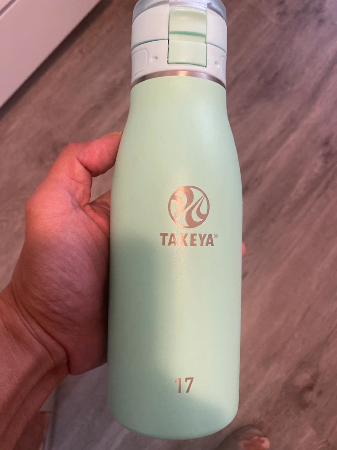 Takeya insulated water bottle. Mint green colour. 17 oz capacity. Features a secure lid.same with what Lululemon water bottles