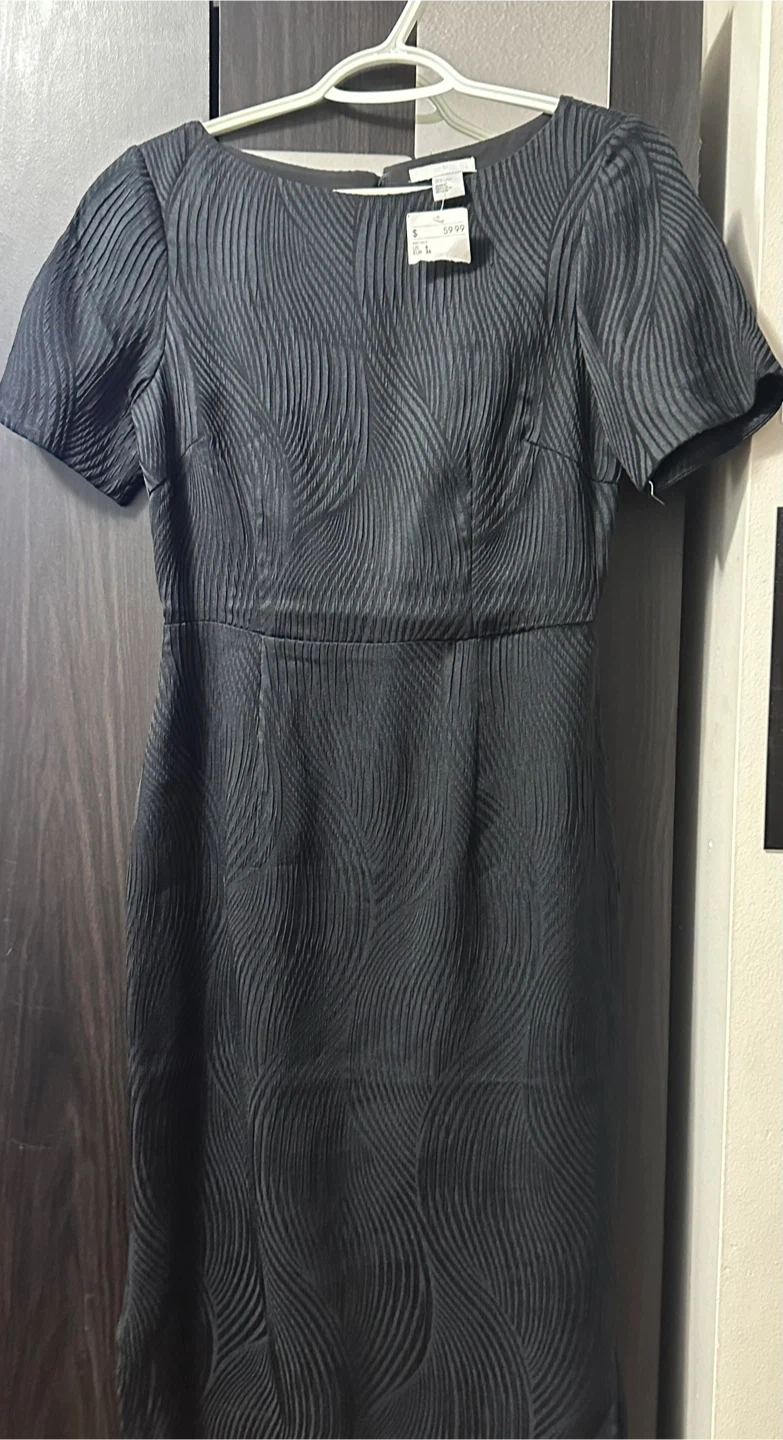 419Selling a Talbots black dress in size 6! It has a unique textured pattern and short sleeves. Perfect for a night out or a special occasion