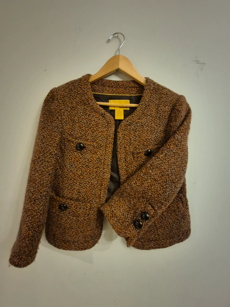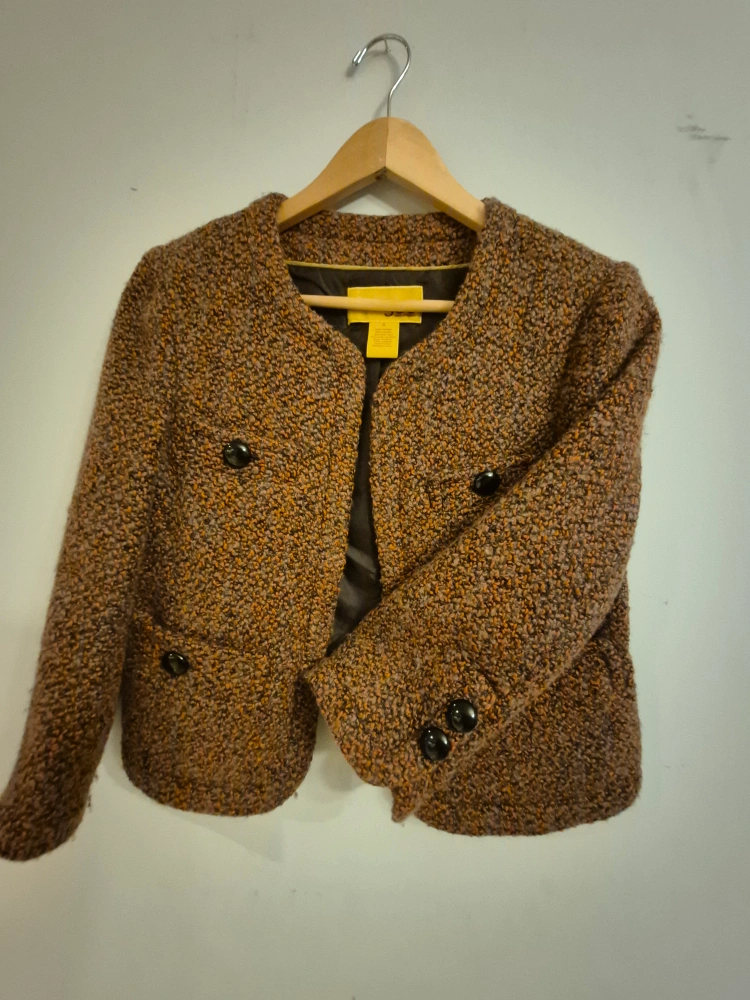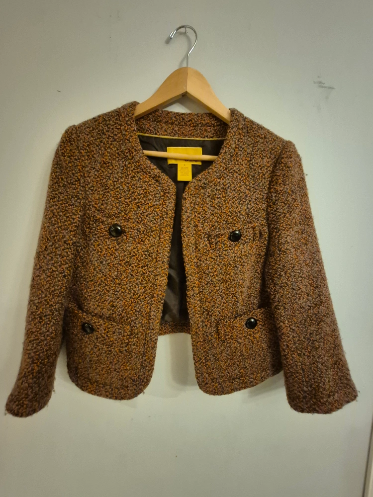 10Here's a stylish Talbots tweed jacket in a lovely brown colour! It's a size 8 and would be a great addition to your wardrobe for a chic, classic look