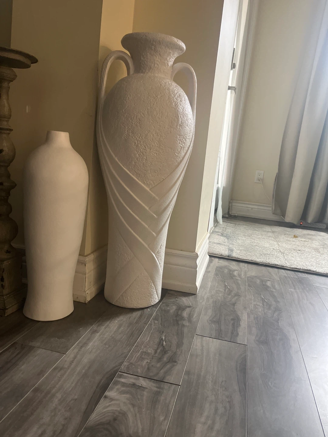 70Selling a tall white decorative vase. It's in great condition and would look lovely in any home