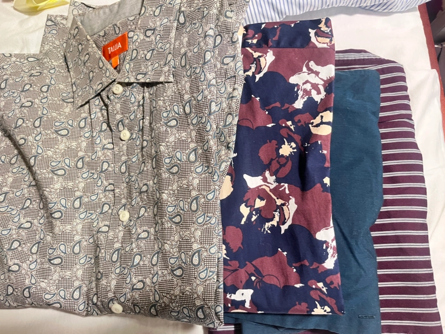 153Selling a bundle of shirts, including a TALLIA 1670,arrow, fosilk shirt with a unique paisley pattern. All in great condition!