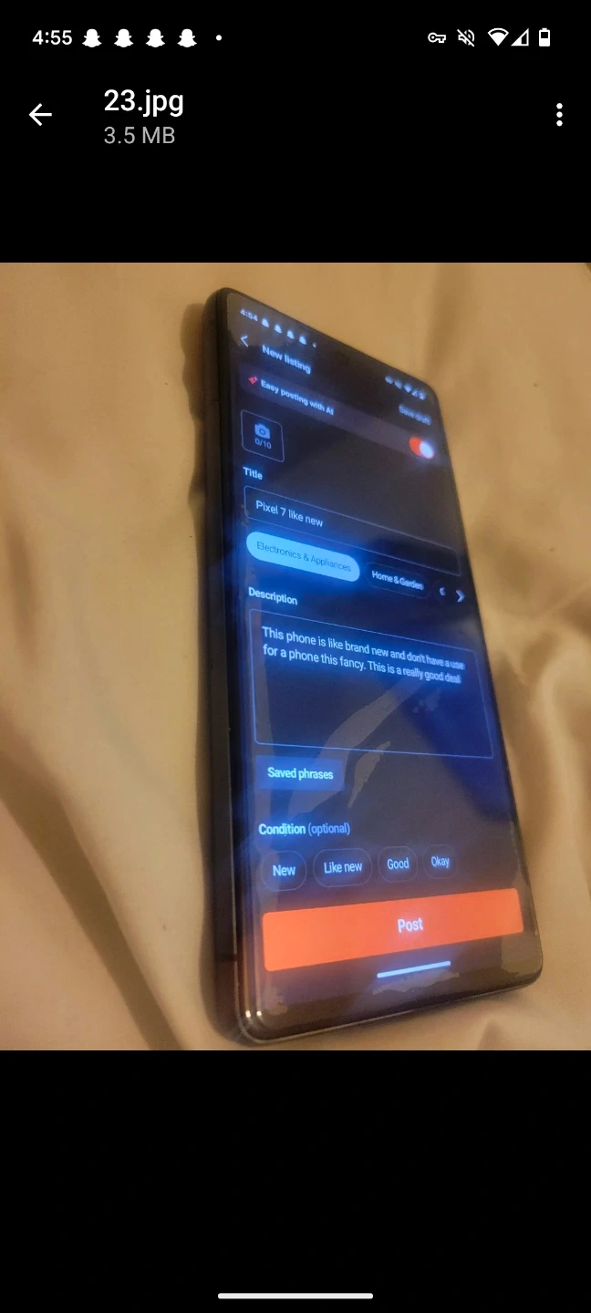 Buy & SellGoogle Pixel 7 SmartphoneGoogle Pixel 7 Smartphone$270This is a Google Pixel 7 smartphone. It's like brand new and has no known issues. This phone is fancy and in good condition. It's a really good deal!BrandGoogleWHERE TO MEETCheck LocationView MapSELLERverifiedBradCentral711 review1 chats·0 favorites·13 viewsSEND CHAT TO SELLERHi Brad! I’m interested in your listing.Hi Brad! I’m interested in your listing.Get the Karrot app to chatSign In to chat