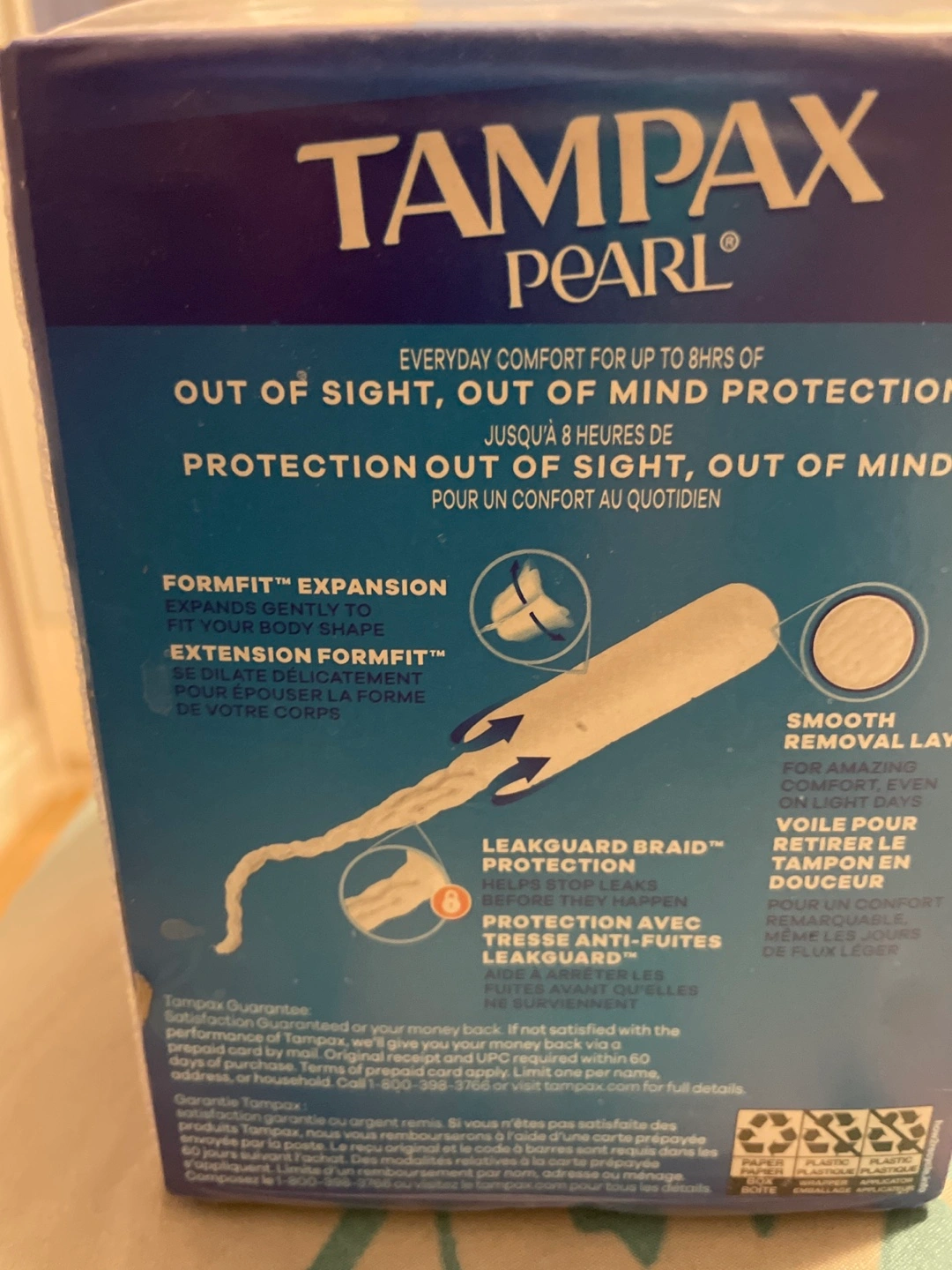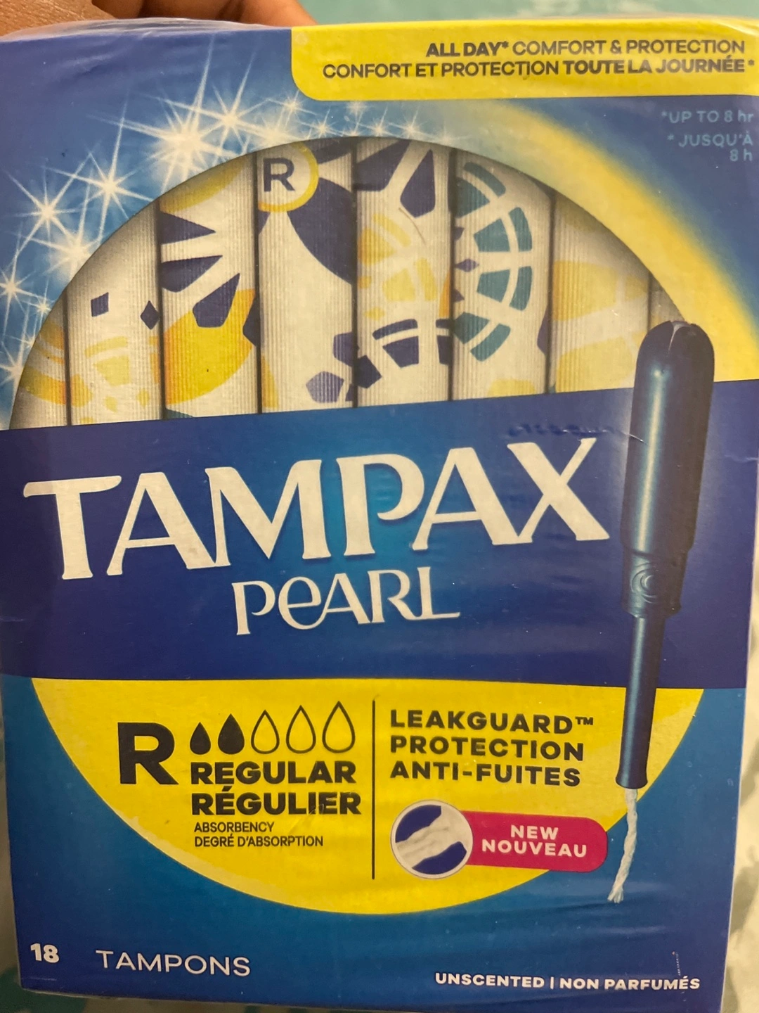 111Selling a box of Tampax Pearl tampons, regular absorbency. The box contains 18 tampons and features LeakGuard protection Each box $5