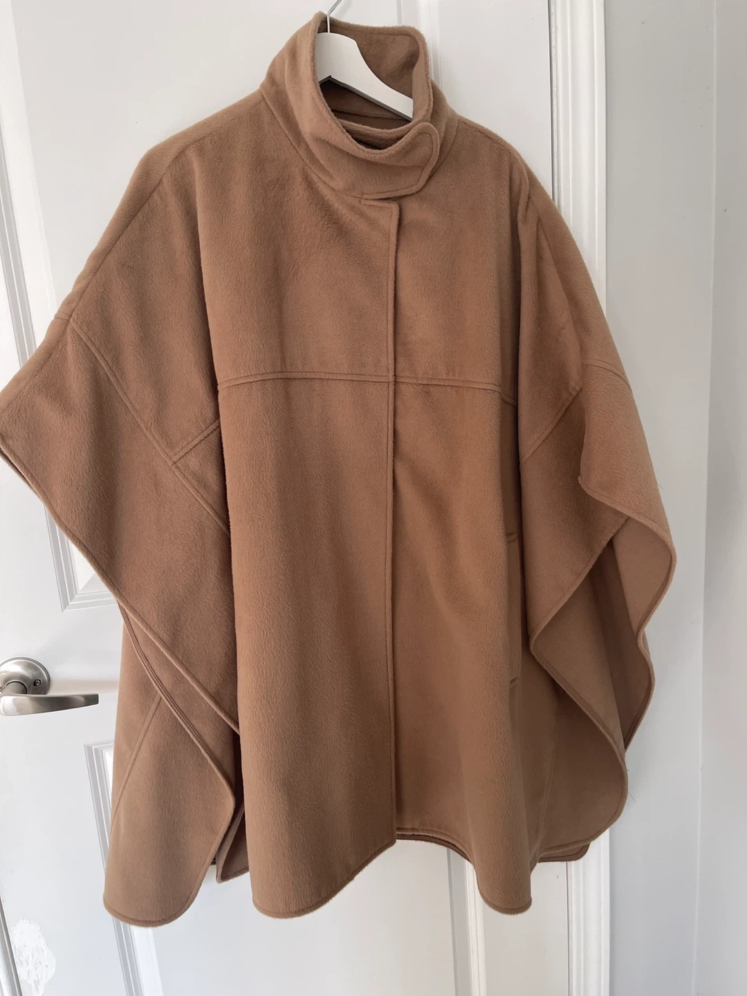 65Selling a cozy tan poncho cape! It's in great condition and perfect for layering during the cooler months. The neutral colour makes it easy to pair with any outfit. It's a stylish and comfortable addition to your wardrobe!