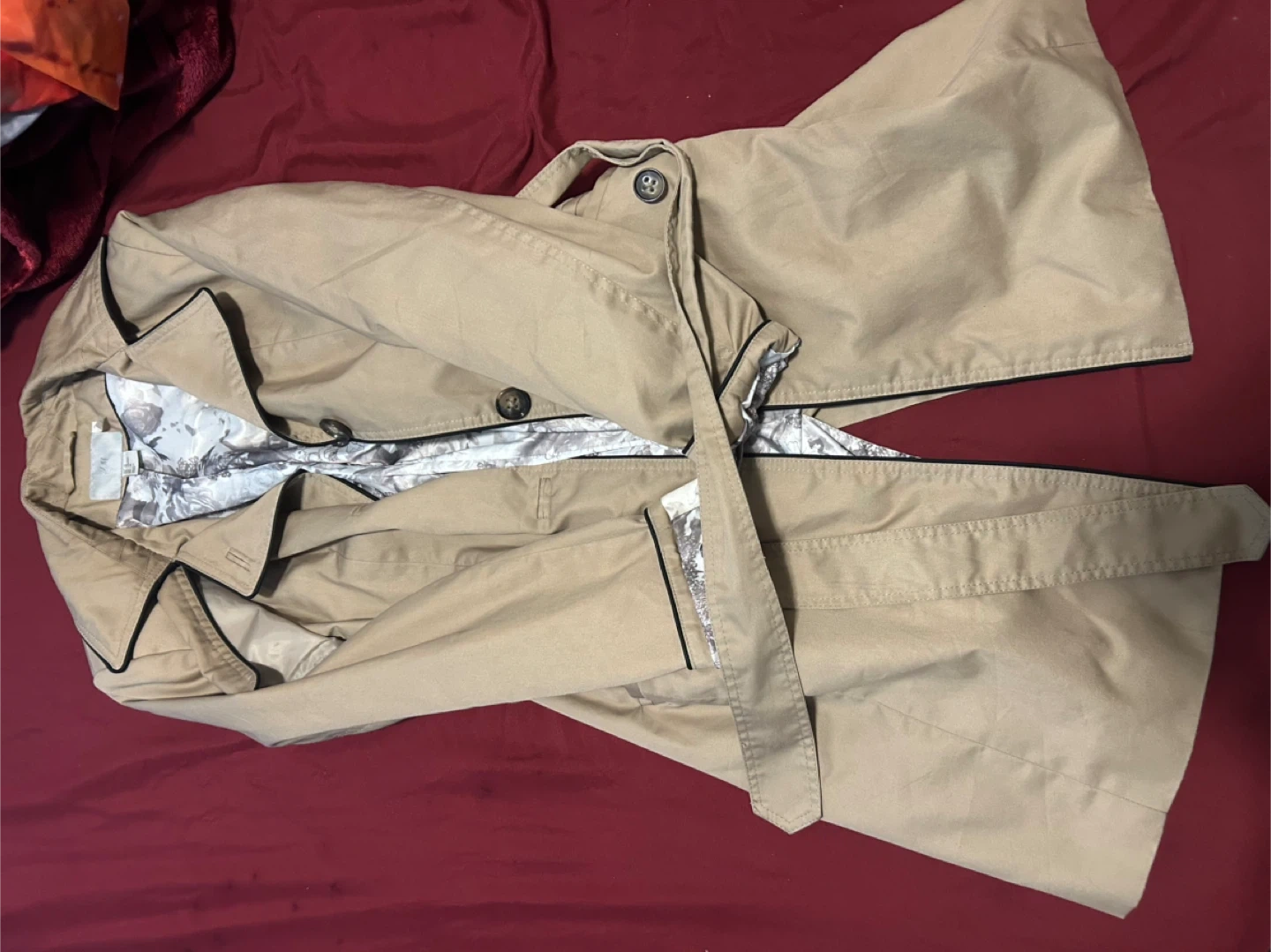 86Selling a tan trench coat. It's in good condition and has a stylish design. Perfect for layering during those cooler days!