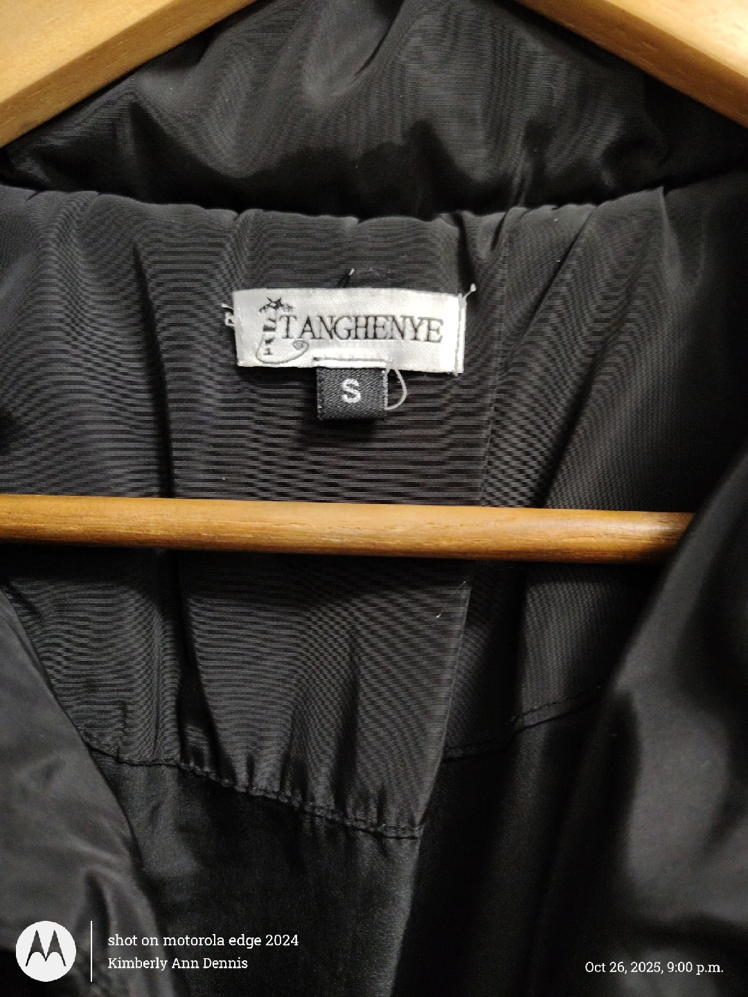 24Selling a Tanghenye black puffer coat in size small. It's in great condition and perfect for staying warm during the colder months! The coat features a stylish design with a comfortable fit.