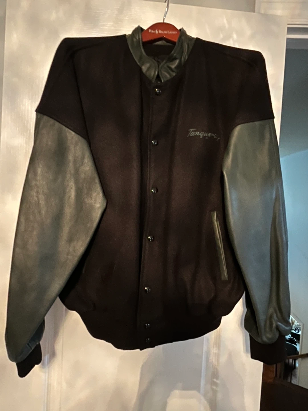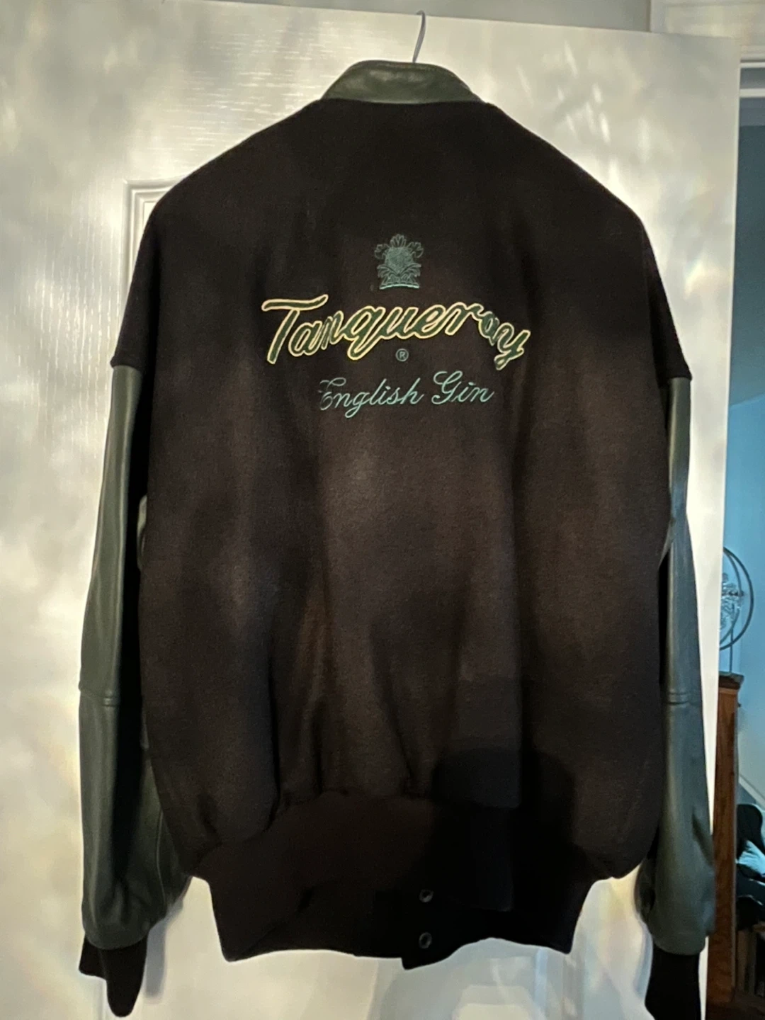 Selling a brand new Tanqueray English Gin varsity jacket! It's a stylish black jacket with green leather sleeves and the Tanqueray logo embroidered on the back. Perfect for adding a unique touch to your wardrobe! Great for collectors and Tanqueray lovers !!