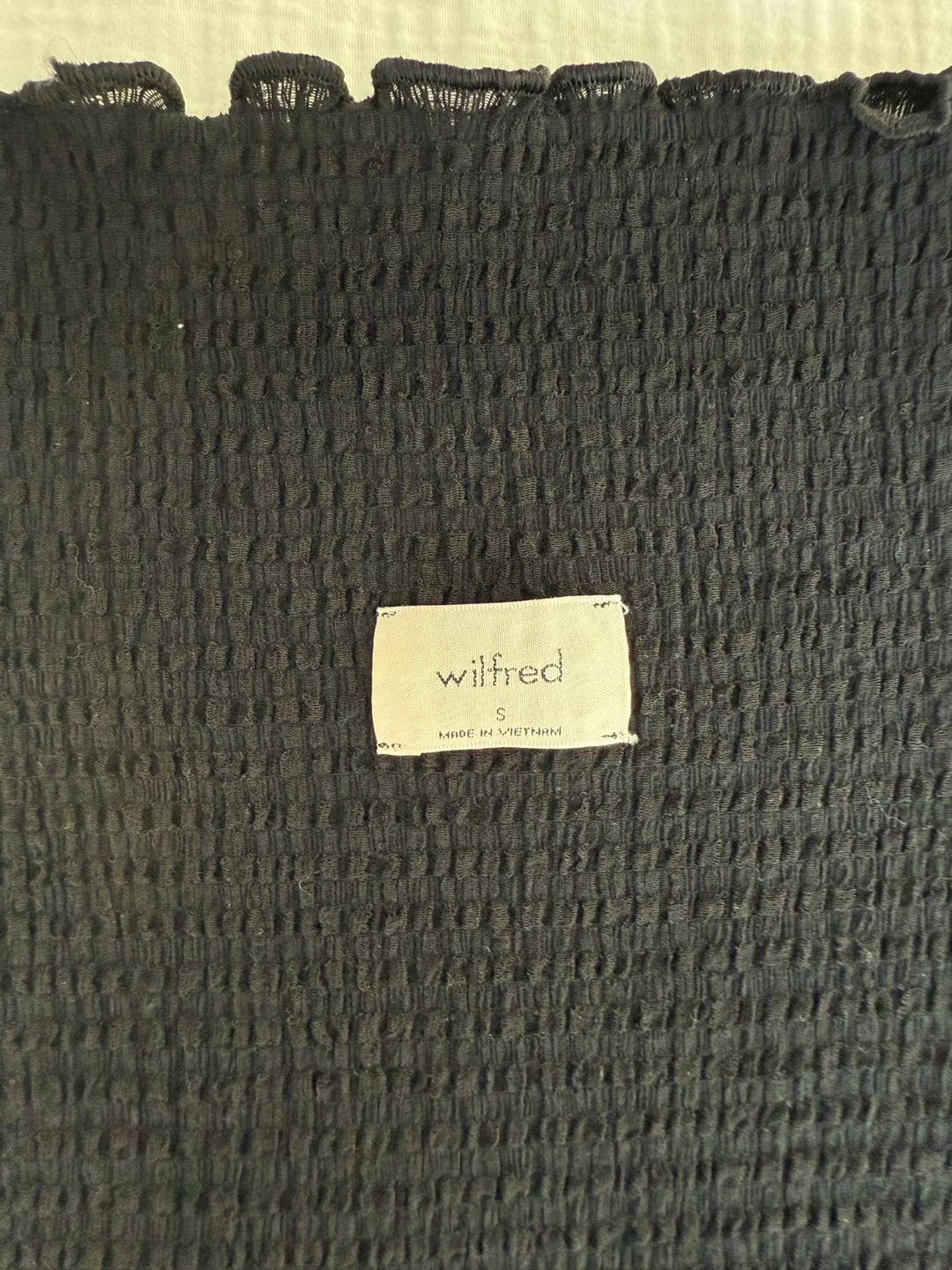 Selling a Wilfred black smocked dress in size small. It's in great condition and ready for a new wardrobe!