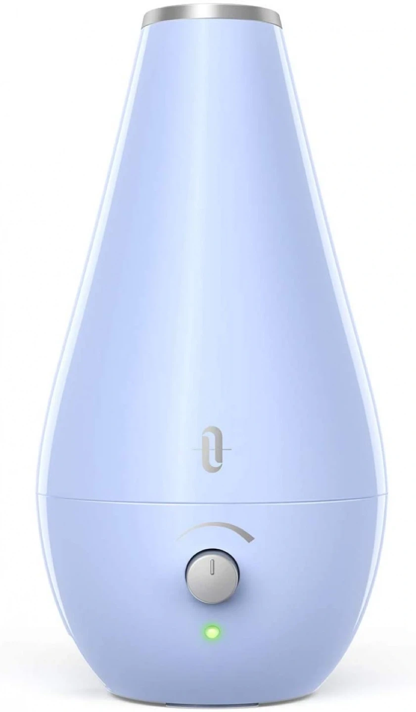 This is a TaoTronics cool mist humidifier in a nice light blue colour. It's perfect for adding moisture to the air in your home, especially during the dry winter months. It features a simple control knob and a modern, sleek design that will fit in with any decor. Keep your air fresh and comfortable!