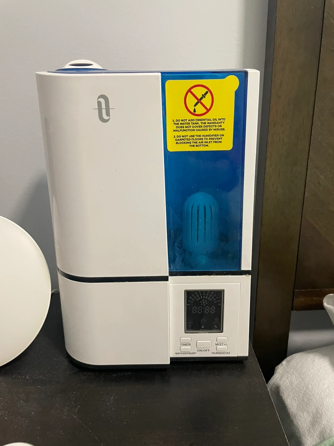 TaoTronics humidifier in great condition! It features a digital display for easy control, and the cool mist is perfect for dry Canadian winters. It's designed to prevent damage to carpets and floors, and it's easy to use