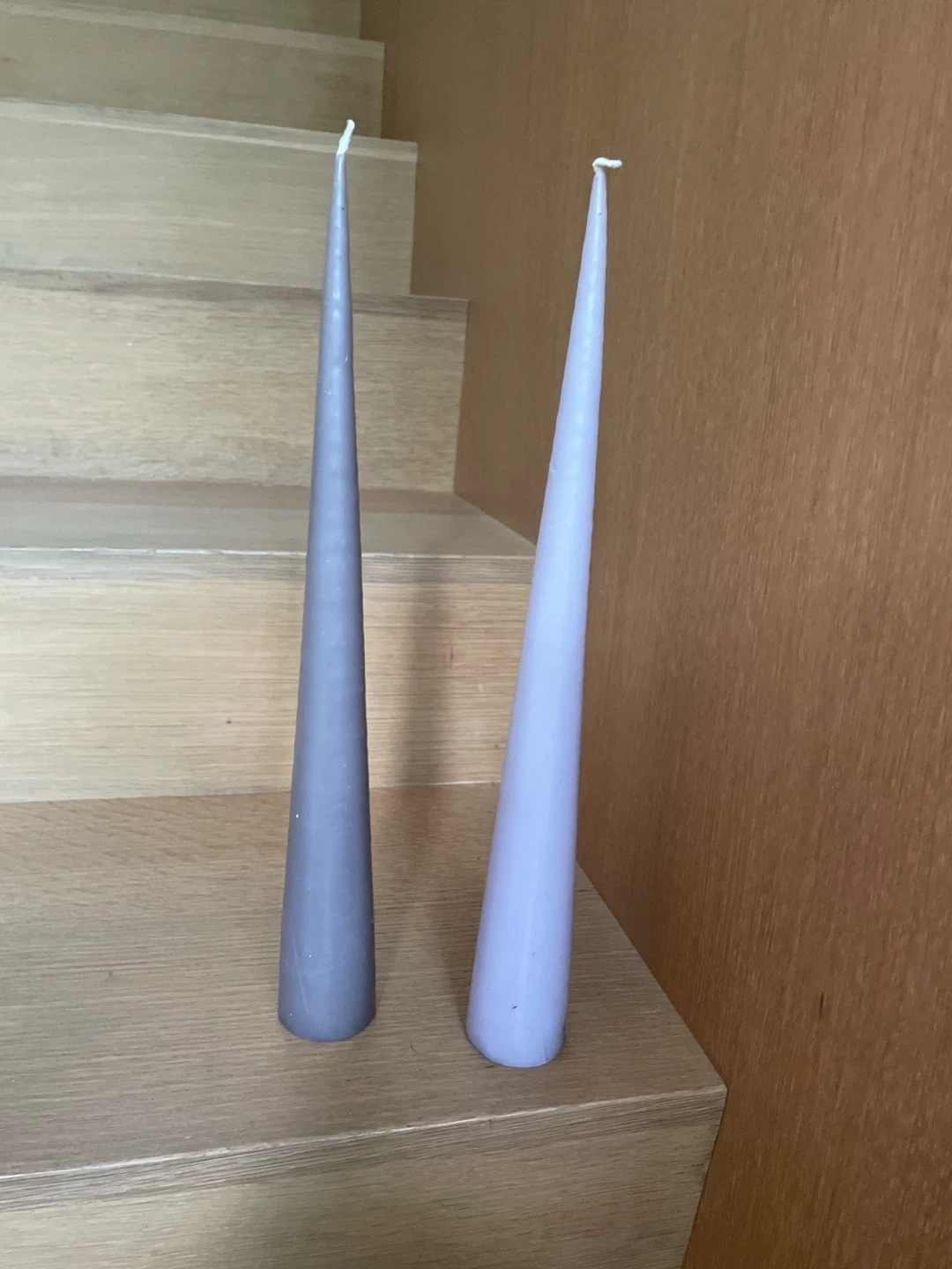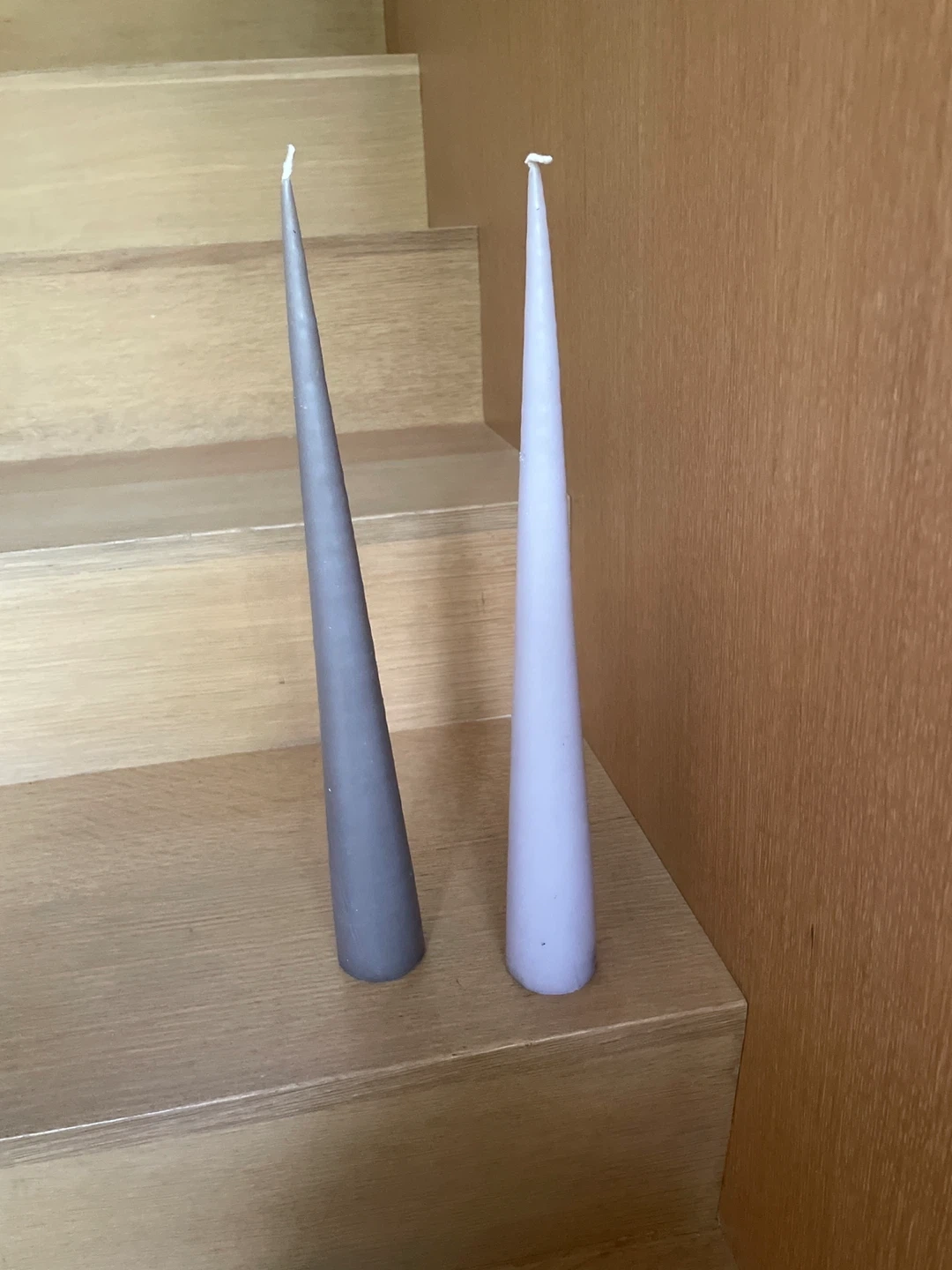 Selling two tapered candles, one grey and one lilac. They're perfect for adding a touch of elegance to any room. They are in great condition and ready to brighten up your space