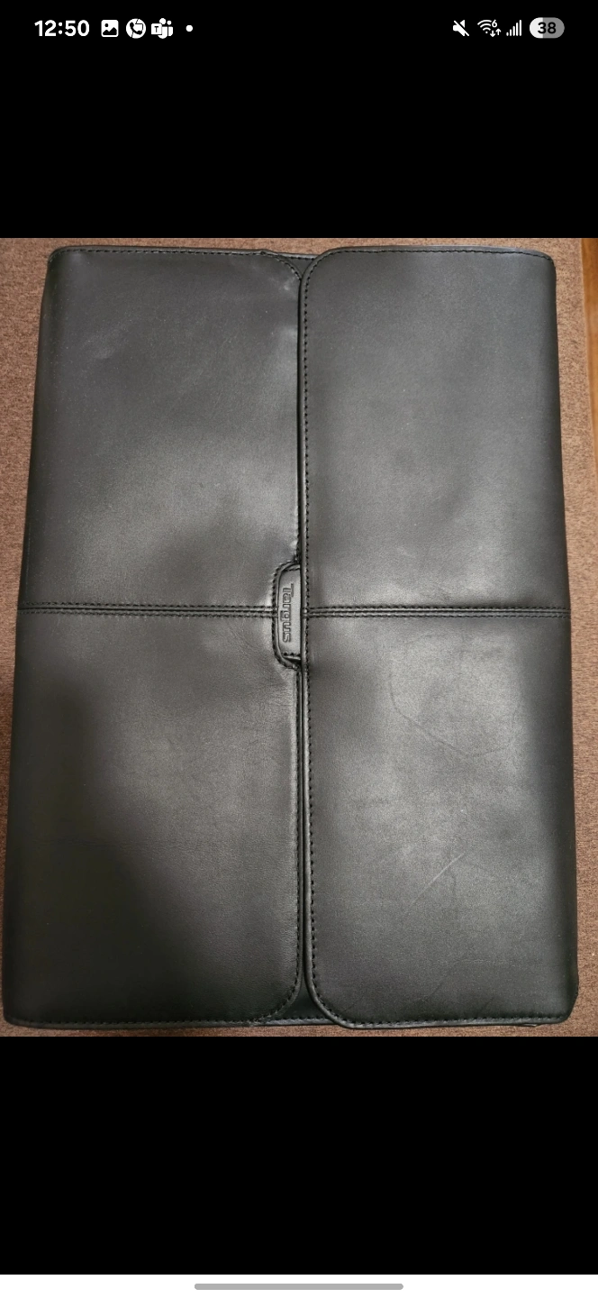 133New, black leather laptop slipcase. Fits laptops up to 15.6 inches. Sleek design, great protection. Targus Leather Laptop Sleeve 15.6 inches Pickup Near 29th Avenue Train Station
