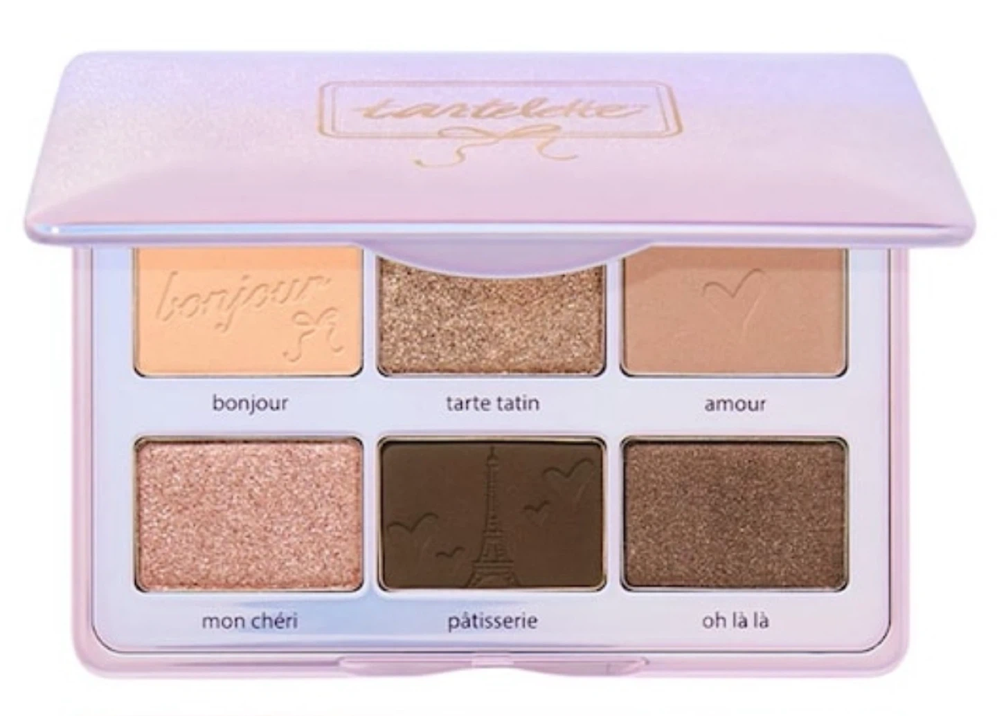 167Selling a new Tartelette eyeshadow palette. The colours are so pretty and perfect for creating a variety of looks. The palette includes a mix of matte and shimmer shades with names like 'bonjour', 'tarte tatin', 'amour', 'mon chéri', 'pâtisserie', and 'oh là là'