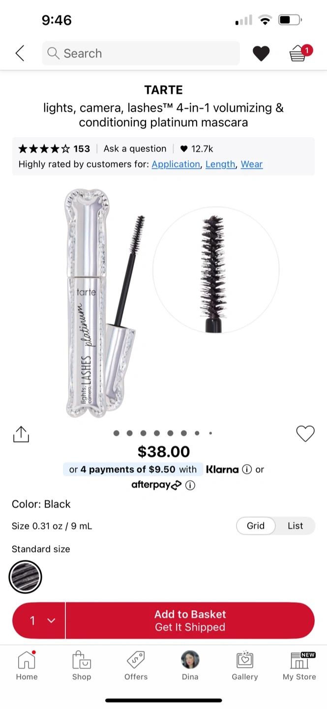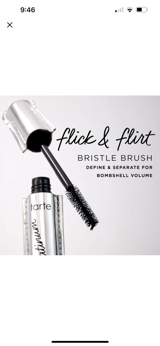 167Get ready to flick and flirt with this Tarte Lights, Camera, Lashes 4-in-1 volumizing and conditioning Platinum mascara! The bristle brush helps define and separate for bombshell volume. This mascara is black and comes in a standard size. Originally bought for $38, it's ready to give you voluminous, lifted, fuller, and curled lashes!