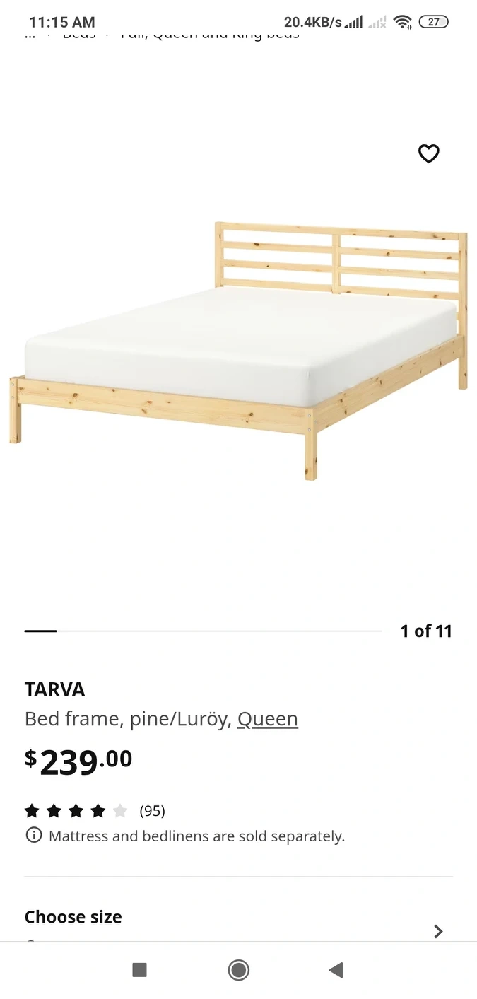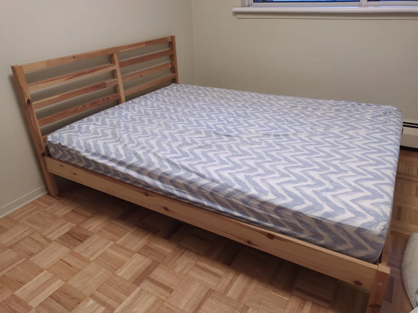 43hi! tarva queen bed frame for sale, in great condition, like new! it includes the luröy slatted base frame Pick up in Yonge and bloor, you may need one additional persona to help you to carry it. Smoke free and pet free home!