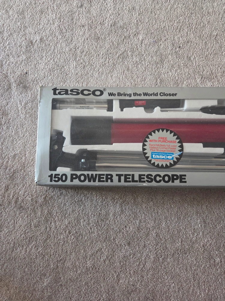 39Selling a Tasco 150 Power Telescope. It comes with all the original components and the box. It's in great condition and ready for some stargazing
