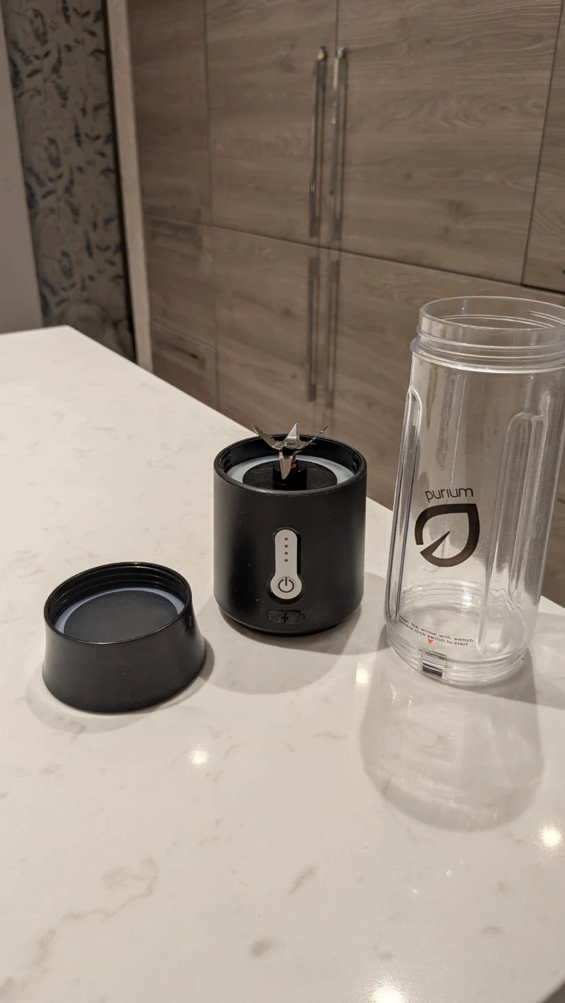 Selling a Purium portable electric juicer cup, model A7. It's in great condition and ready to make your smoothies on the go! The juicer cup is black and features a USB charging port. The rated voltage is 7.4V, and the motor speed is 18000 rpm. It's lightweight and portable, perfect for a healthy lifestyle.