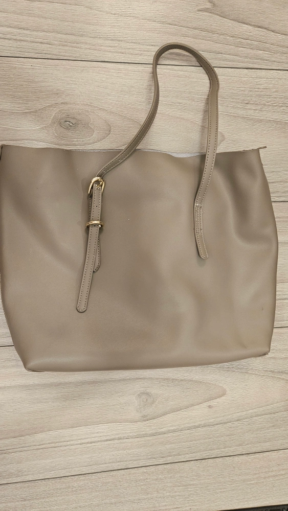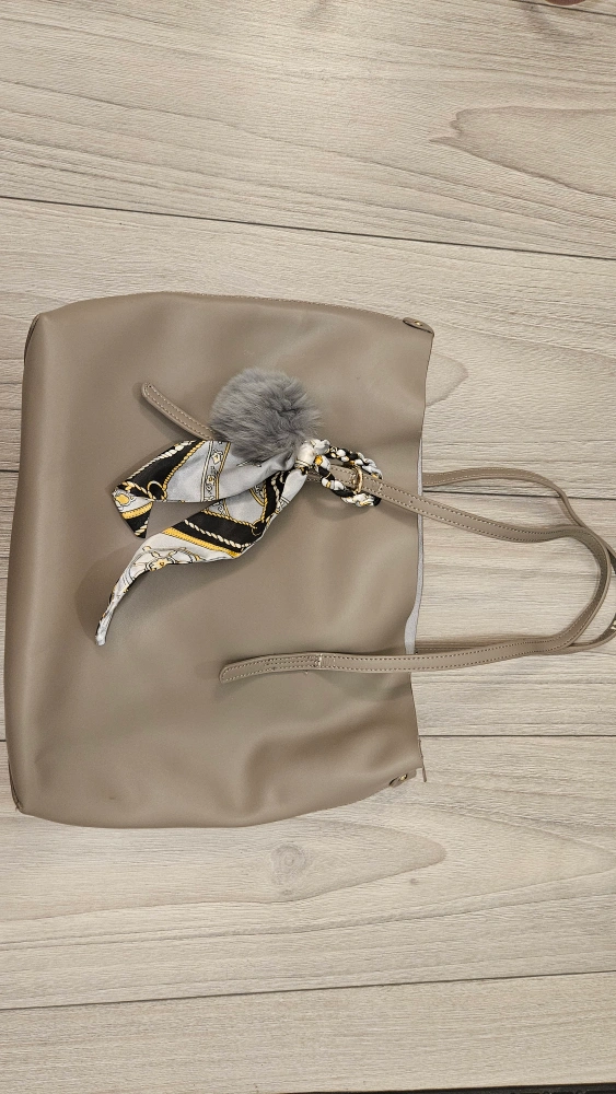 27Selling a taupe-coloured tote bag, perfect for everyday use! It has a spacious interior with a zippered compartment. There are some scratches on one corner, as shown in the photos, but otherwise it's in good condition
