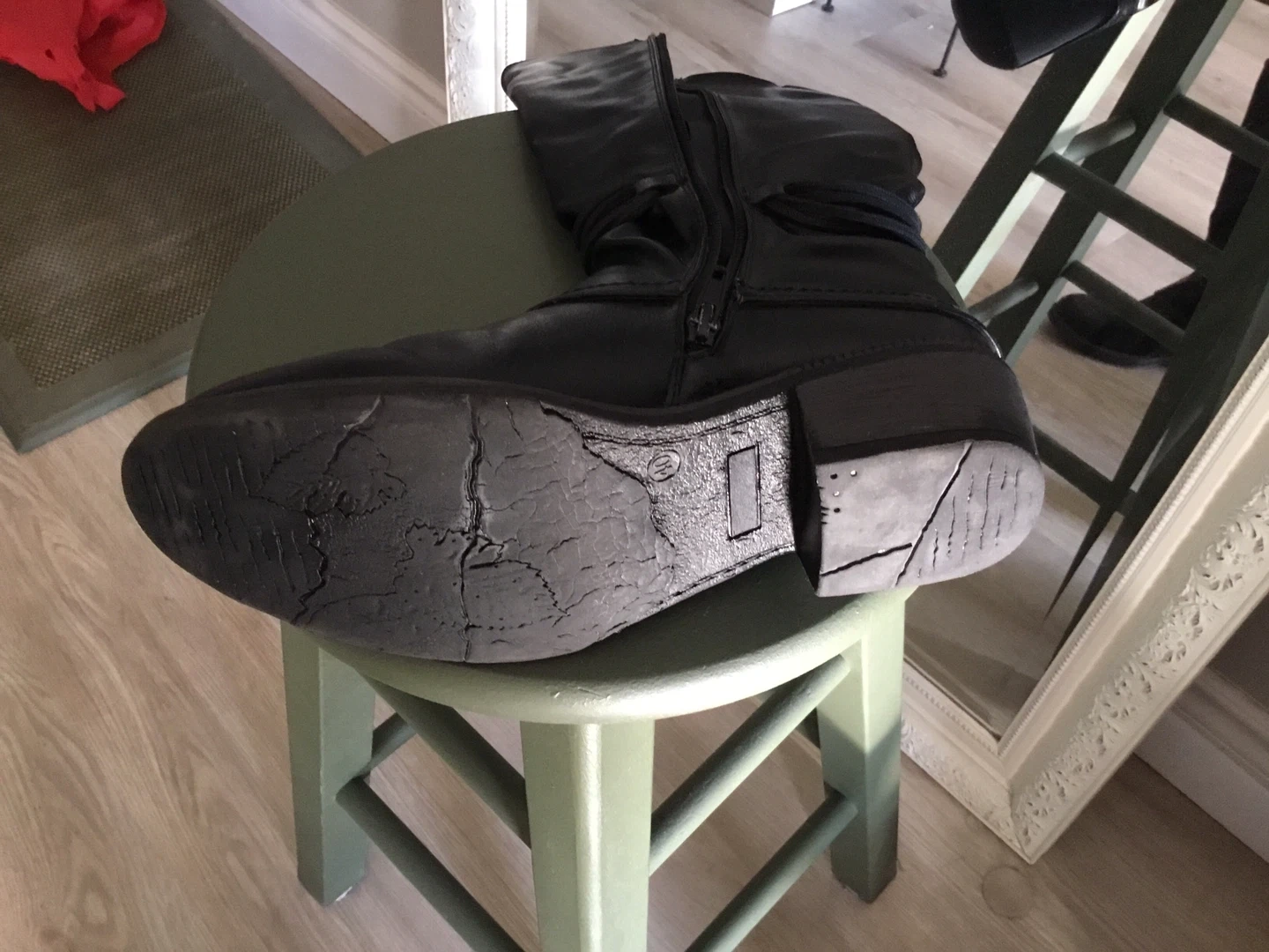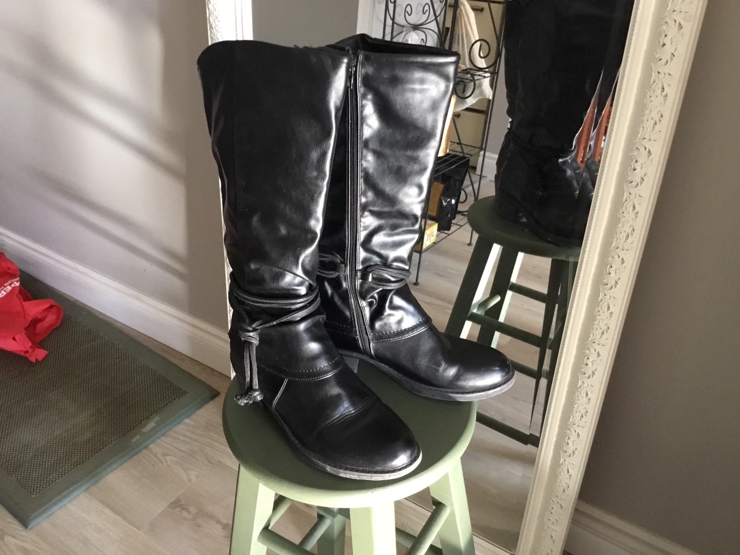 65Selling a pair of black knee-high boots from Taxi. They have a zipper and a tie detail.