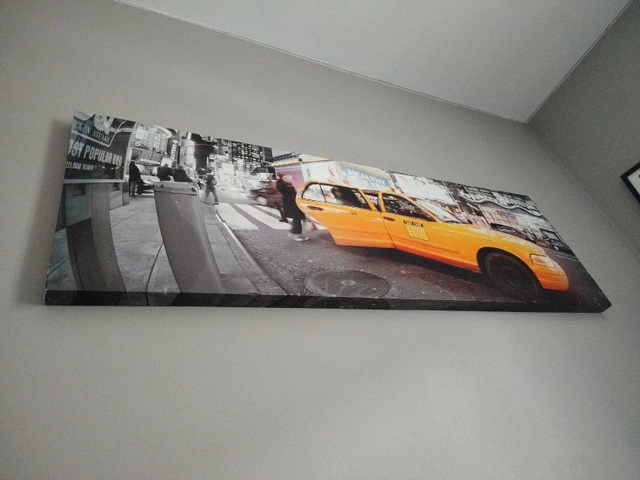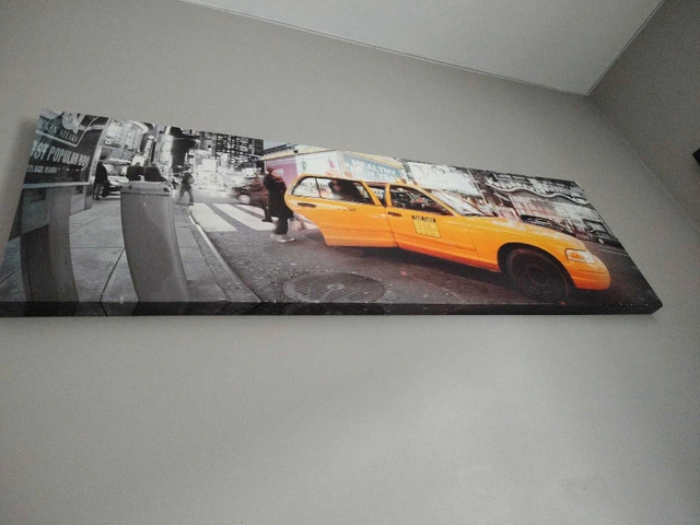 60Elevate your decor with this striking New York City taxi canvas print, capturing the vibrant energy of the Big Apple. Though previously displayed, this piece remains in good condition, ready to bring a touch of urban sophistication to any room. Picture this: You bring the picture home and find it is the perfect touch to any room! But don't delay, if the ad is up, yes it's still available! Pick up only as I do not drive.