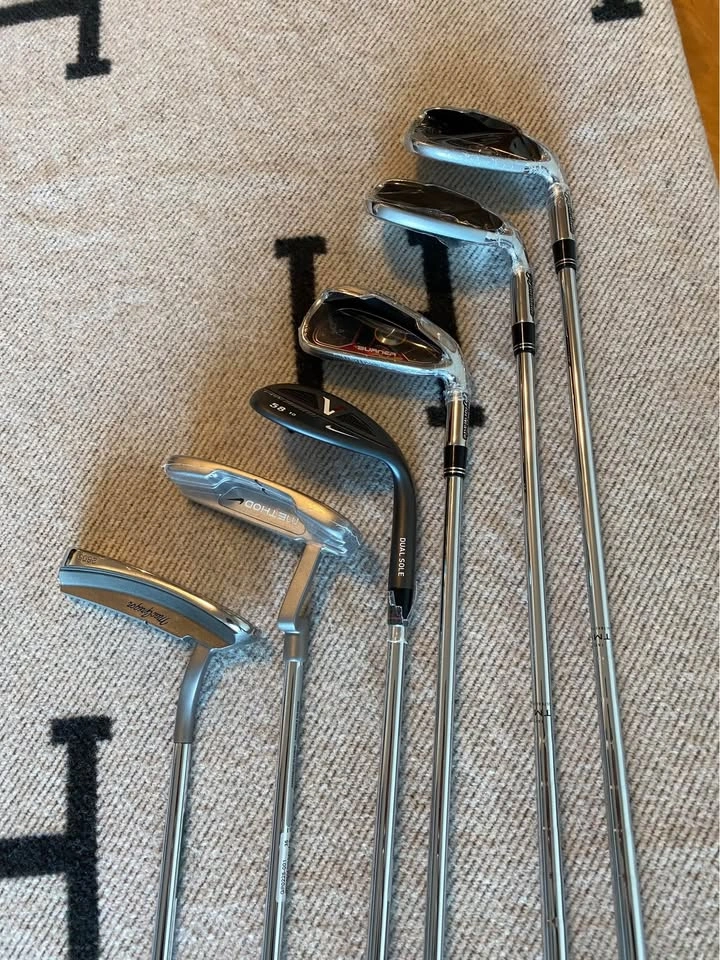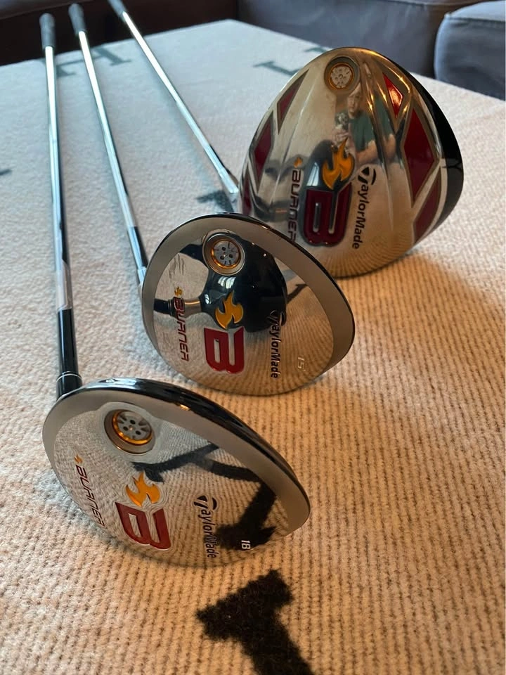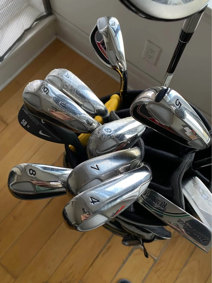 Selling an excellent, like-new TaylorMade BURNER Golf Club full complete set with bags. They were ONLY used for practice on the driving range, never used on the golf course's pitch. So the Putters, Wedges, and Irons (A,9,6) are still plastic sealed and unused. Right-handed, Regular. Set Contents: *Driver: TaylorMade BURNER 1W, *Fairway Wood: 3W,5W *Irons: BURNER Plus 4,5,6,7,8,9, P, A (Irons A, 9, 6 are brand new in sealed unused). *Wedge: NIKE 58/10 V-REV, Brand New Unused with sticker on condition. *2 Putters: NIKE Method Core MC-3i Brand new in sealed unused condition. MacGregor Response 34” 2605, Brand new in sealed unused condition. Cash deal, and self-pick up in Markham. Thanks!
