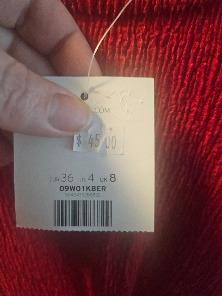 Long sleeve mini dress. Red colour. Cut-out detail at waist. Textured fabric. Size 4. Brand new with tags.