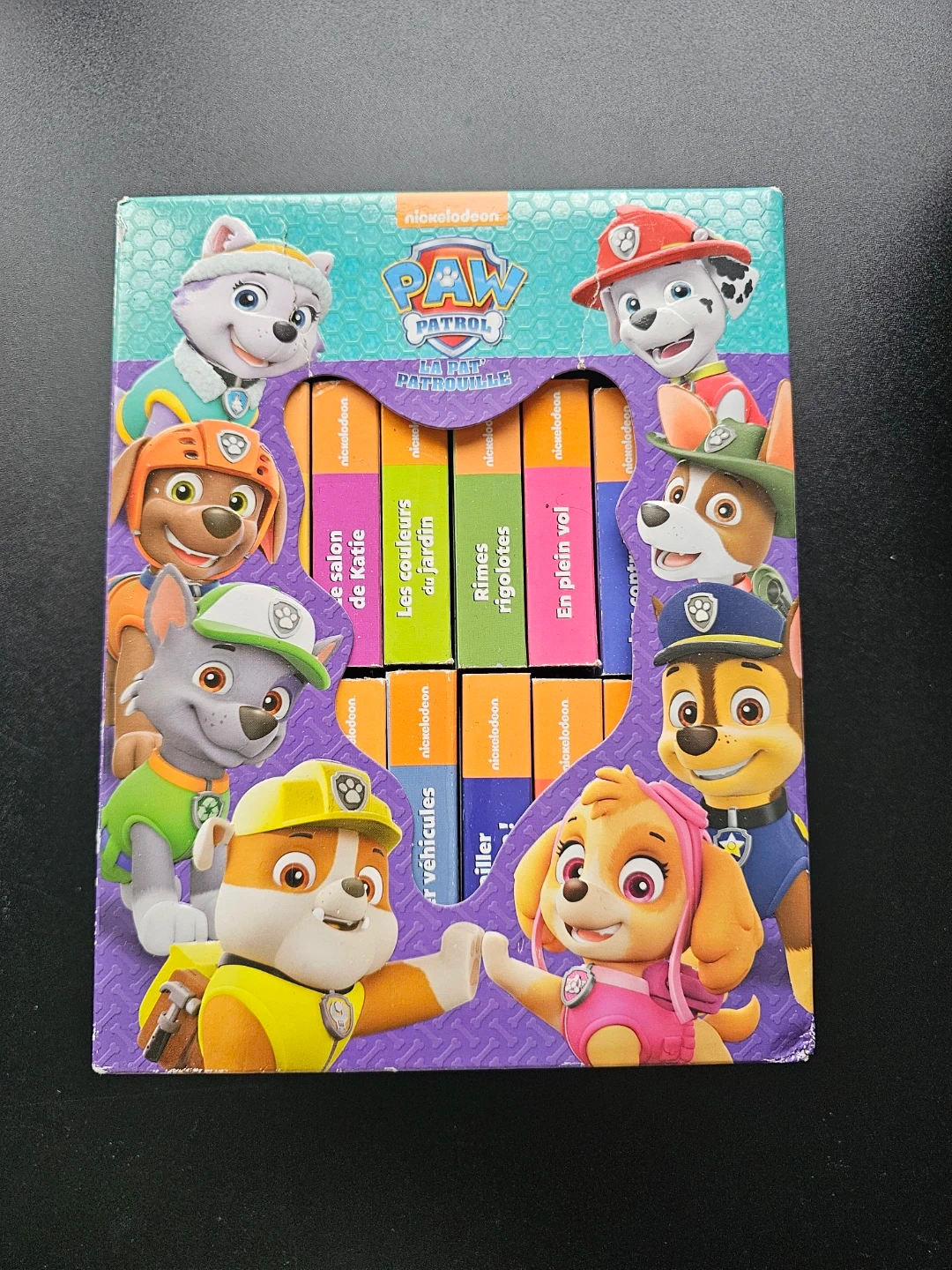 Selling a Paw Patrol 'Ma Petite Collection' book set! It's a cute little set with colourful books. Perfect for young children who love Paw Patrol and want to learn French. Each book features a different Paw Patrol character and teaches simple French words and phrases.