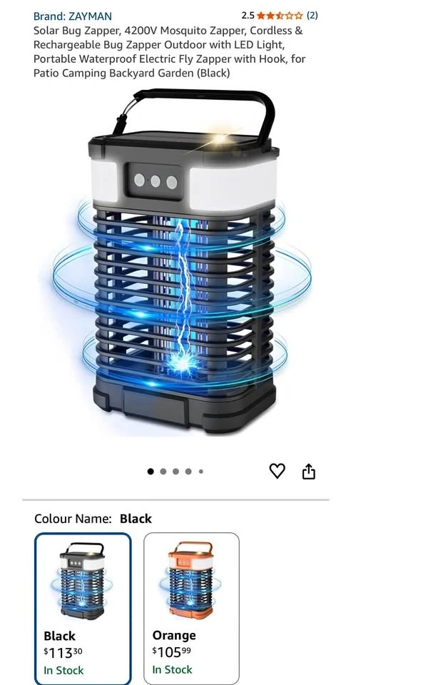 New 4200V Solar Bug Zapper, Cordless & Rechargeable
