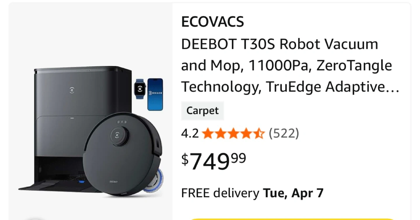 Ecovacs Deebot T30S robot vacuum and mop is for sale.