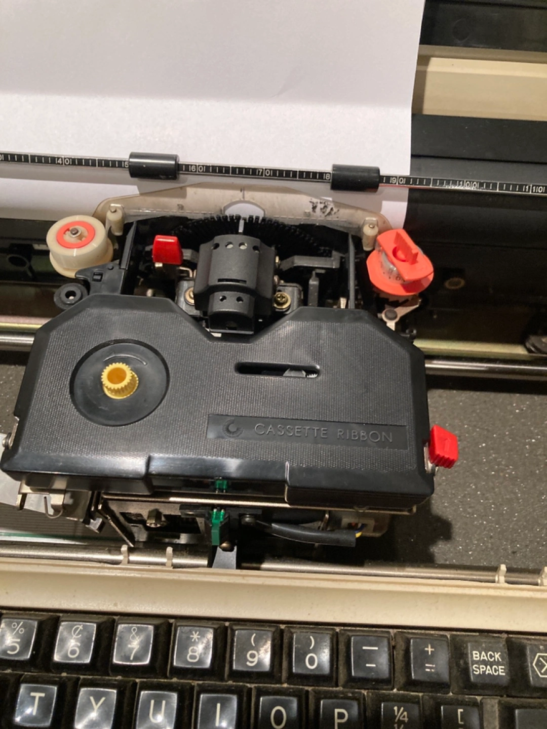 Vintage electric typewriter. Comes with a cover. The ribbon is worn and the machine should be cleaned before use. It turns on but doesn’t type ,needs an overhaul or just to sit on a shelf!