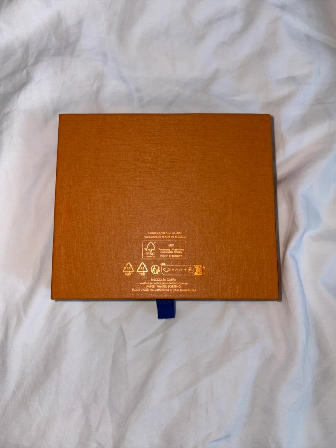 Louis Vuitton orange cardboard box with its dust bag included. Made in Mexico. Protects your valuables in style!