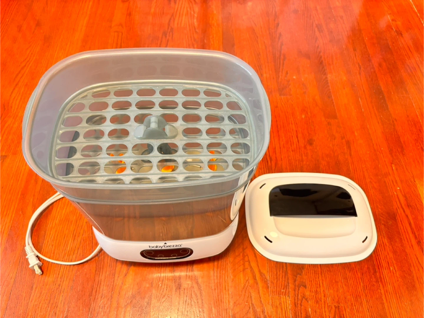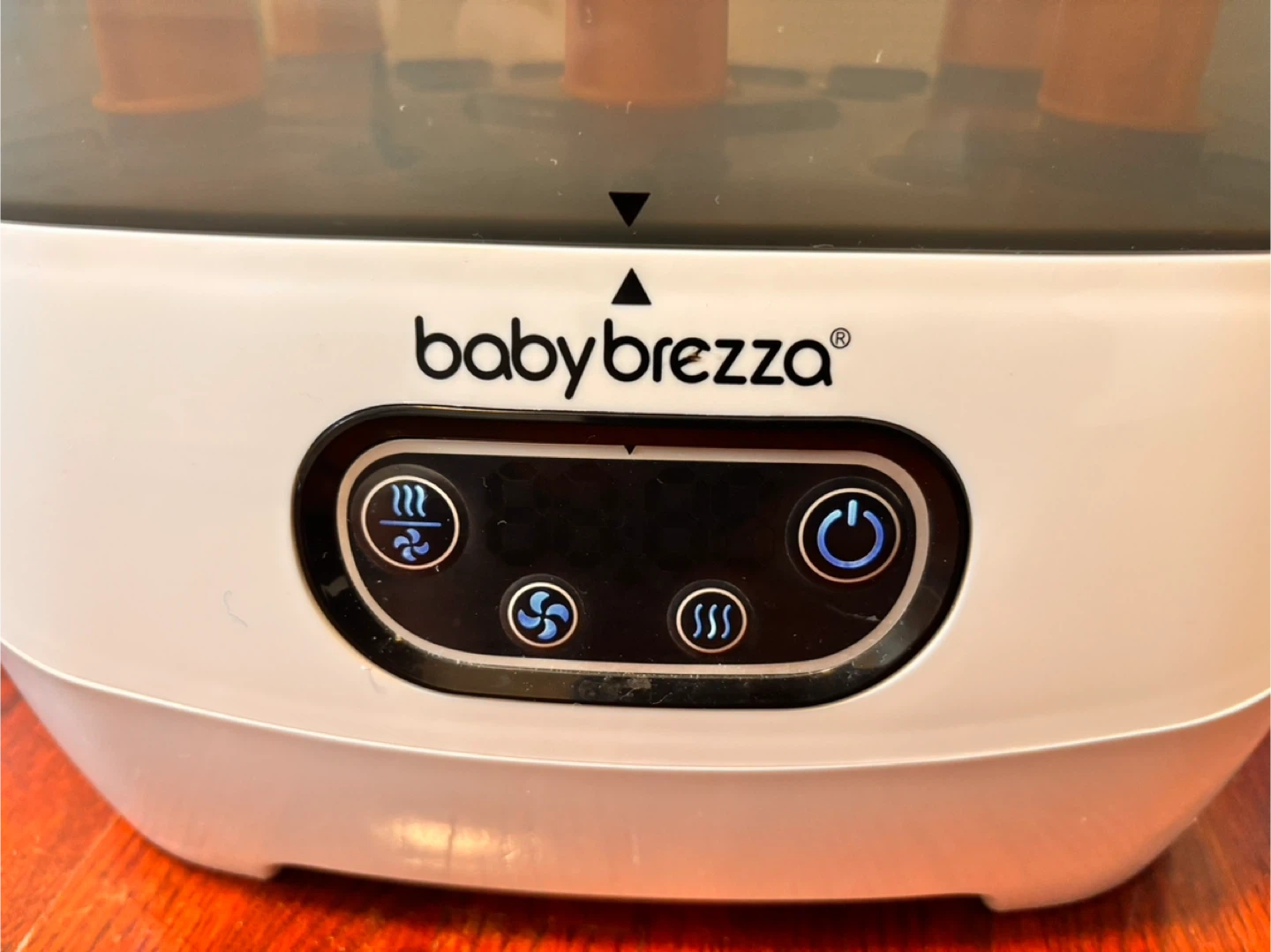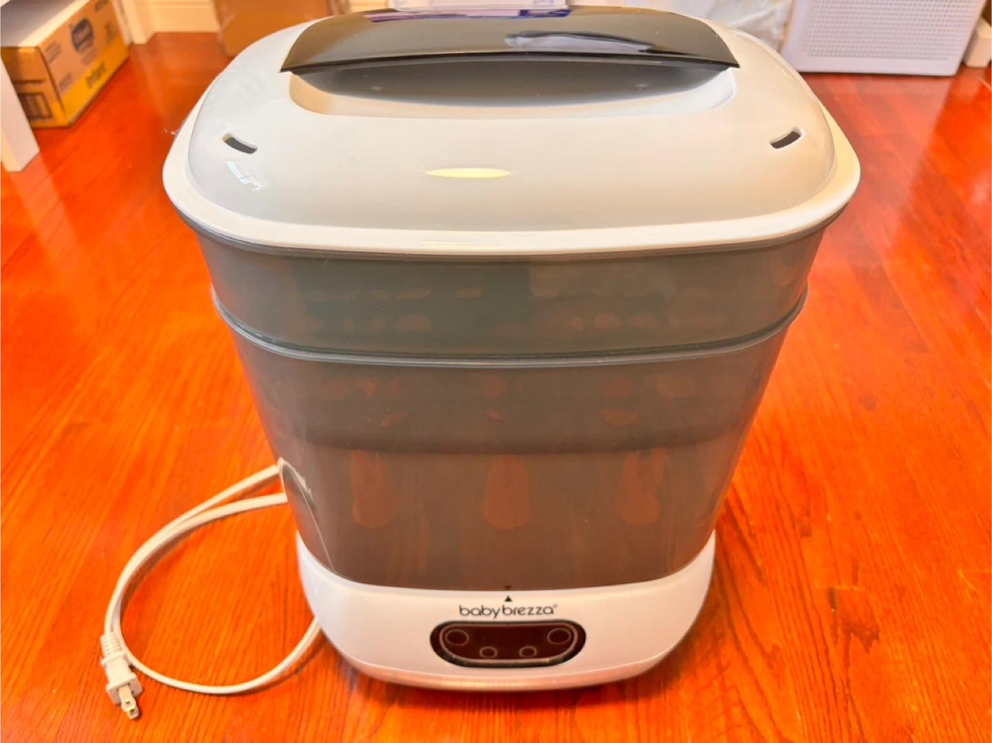 This is a Baby Brezza electric sterilizer and dryer for baby bottles and accessories. It has multiple functions for steaming and drying. It's great for keeping baby items clean and germ-free!