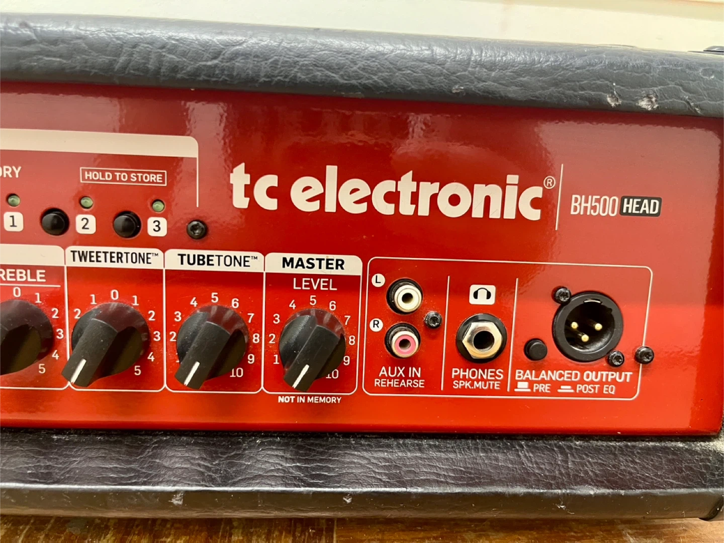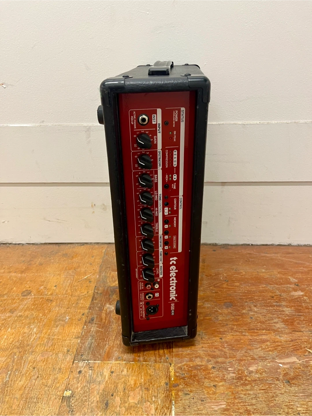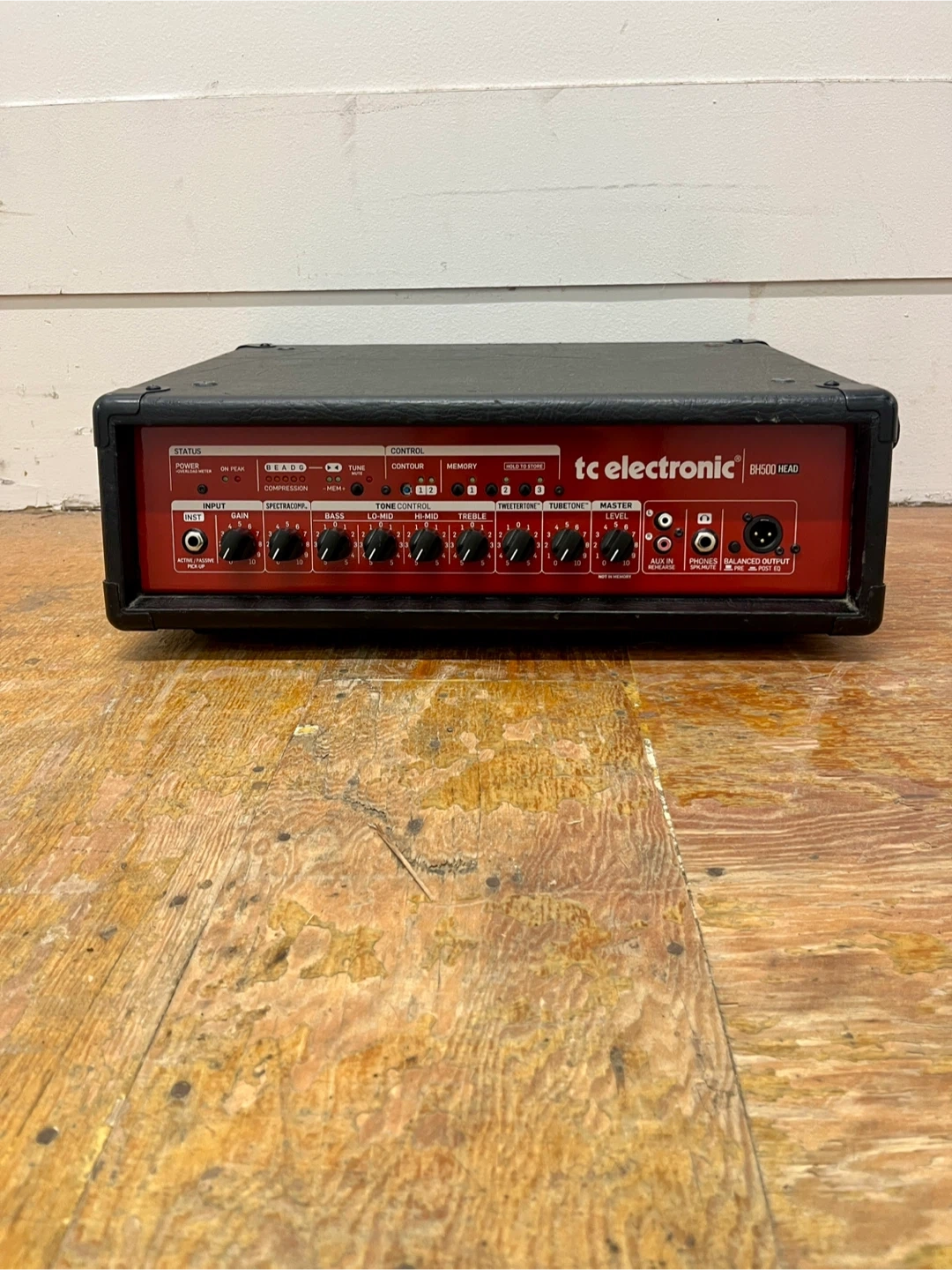 500 watt TC Electronic BH500 Bass Amplifier Head. Great sounding bass head with some cool features. Nice and light and compact as well. Check my other ads for a TC speaker cab that works great with this head. Delivery is available. -Built in tuner with mute button -TubeTone knob for dialing in sweet sounding tube emulation -TweeterTone knob for extended high frequency -SpectraComp built in compressor -Three switchable presets -Contour (midscoop) button (button missing but still functions) -XLR DI output -Headphone output -Aux input -Speakon speaker output. Will come with a speakon to speakon or speakon to 1/4" cable, whichever you need for your head. -Comes with power cable