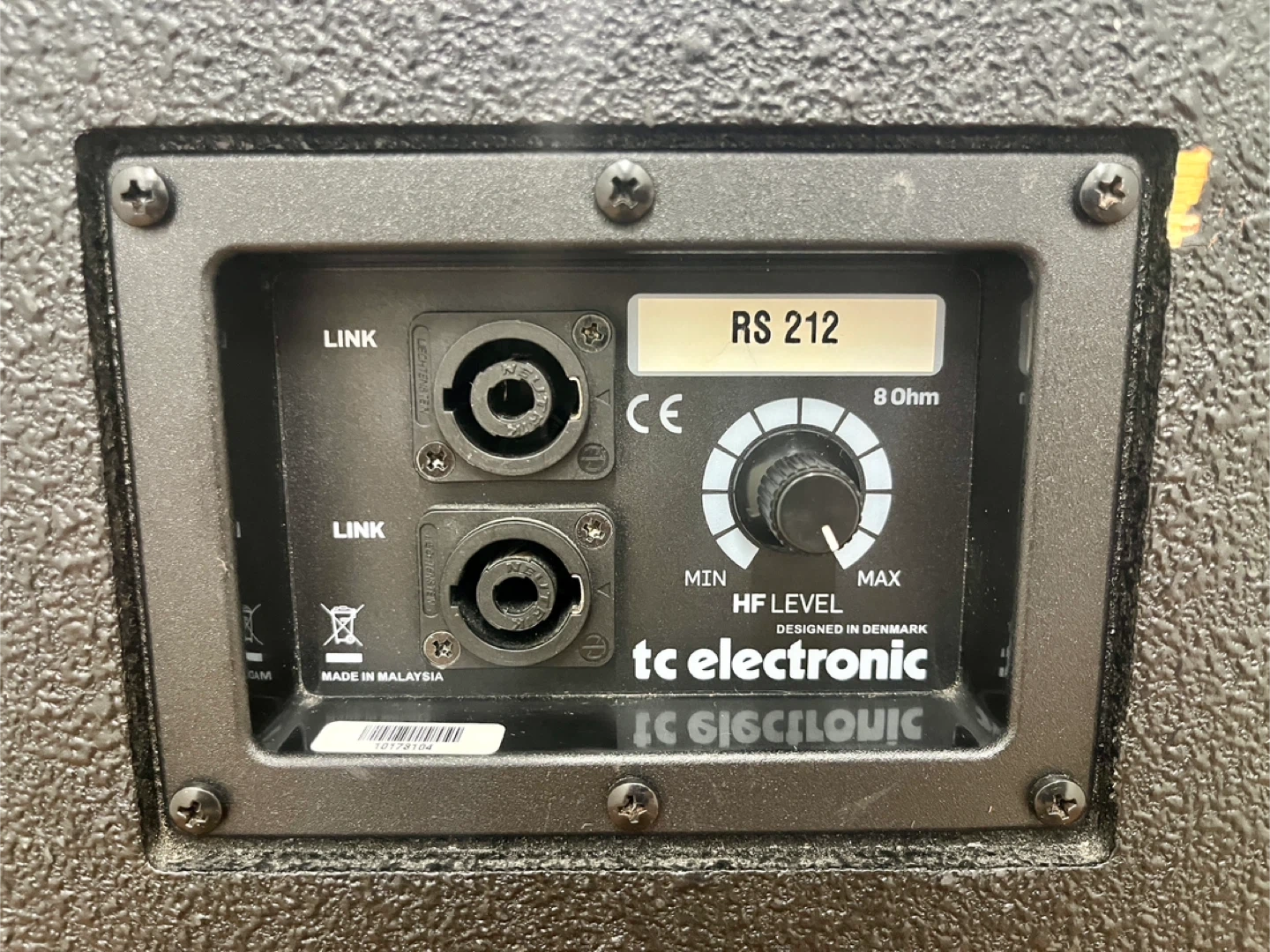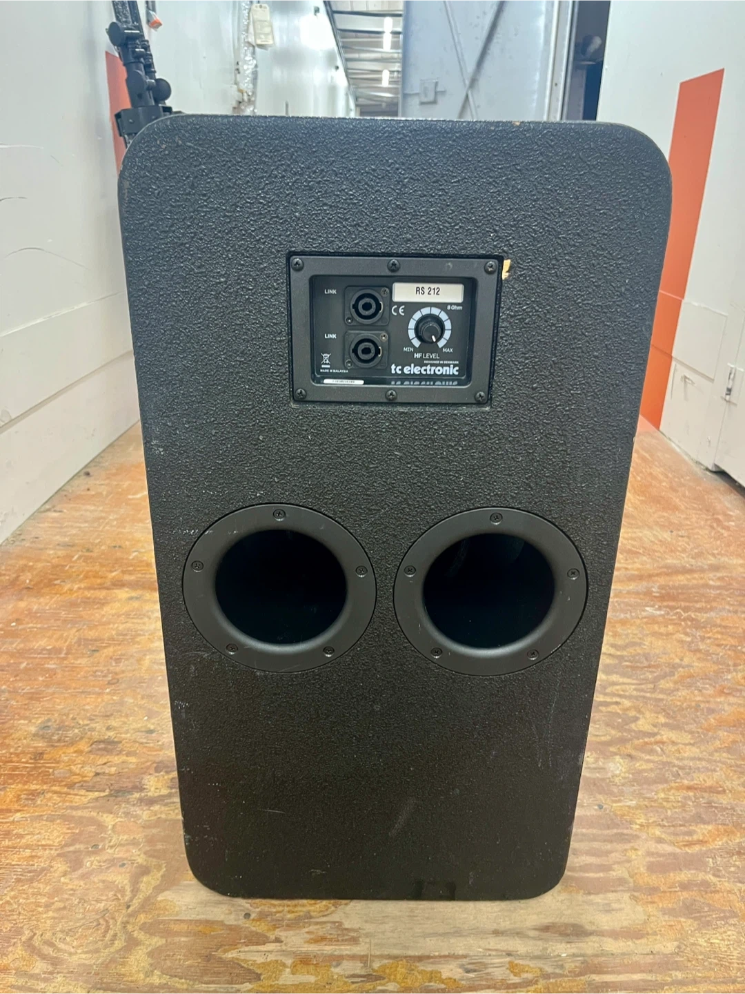 TC Electronic RS212 400 Watt bass speaker cab. This cab has a big sound in a lightweight compact package. 2x 12 inch eminence speakers and an eminence titanium voice coil tweeter with a level control on the back. 8 ohms. Dual speakon inputs/link. Comes with either a speakon to speakon speaker cable or a speakon to 1/4" cable, whichever you need for you amp head. Also selling a TC Electronic amp head in my other ads that works great with this cab. Delivery is available.