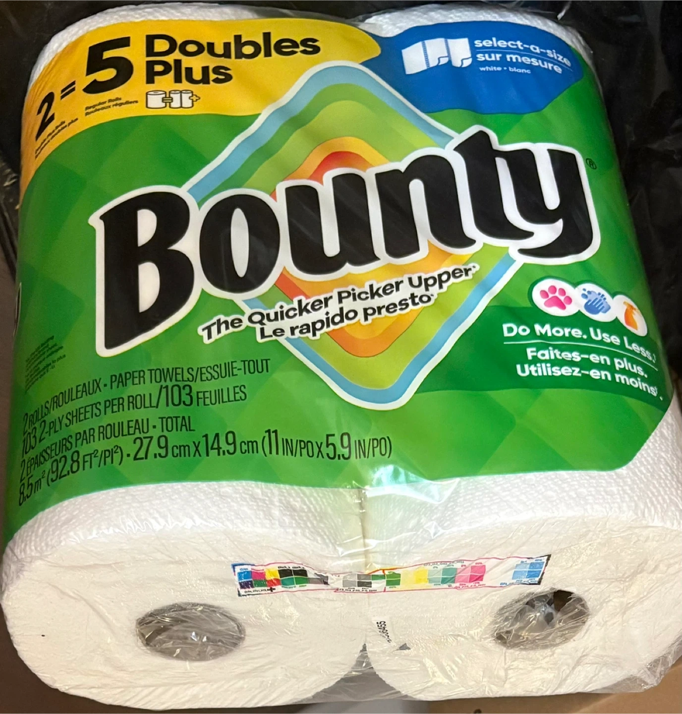Bounty Select-A-Size paper towels. These are 2-ply sheets per roll. The total area is 8.5m².