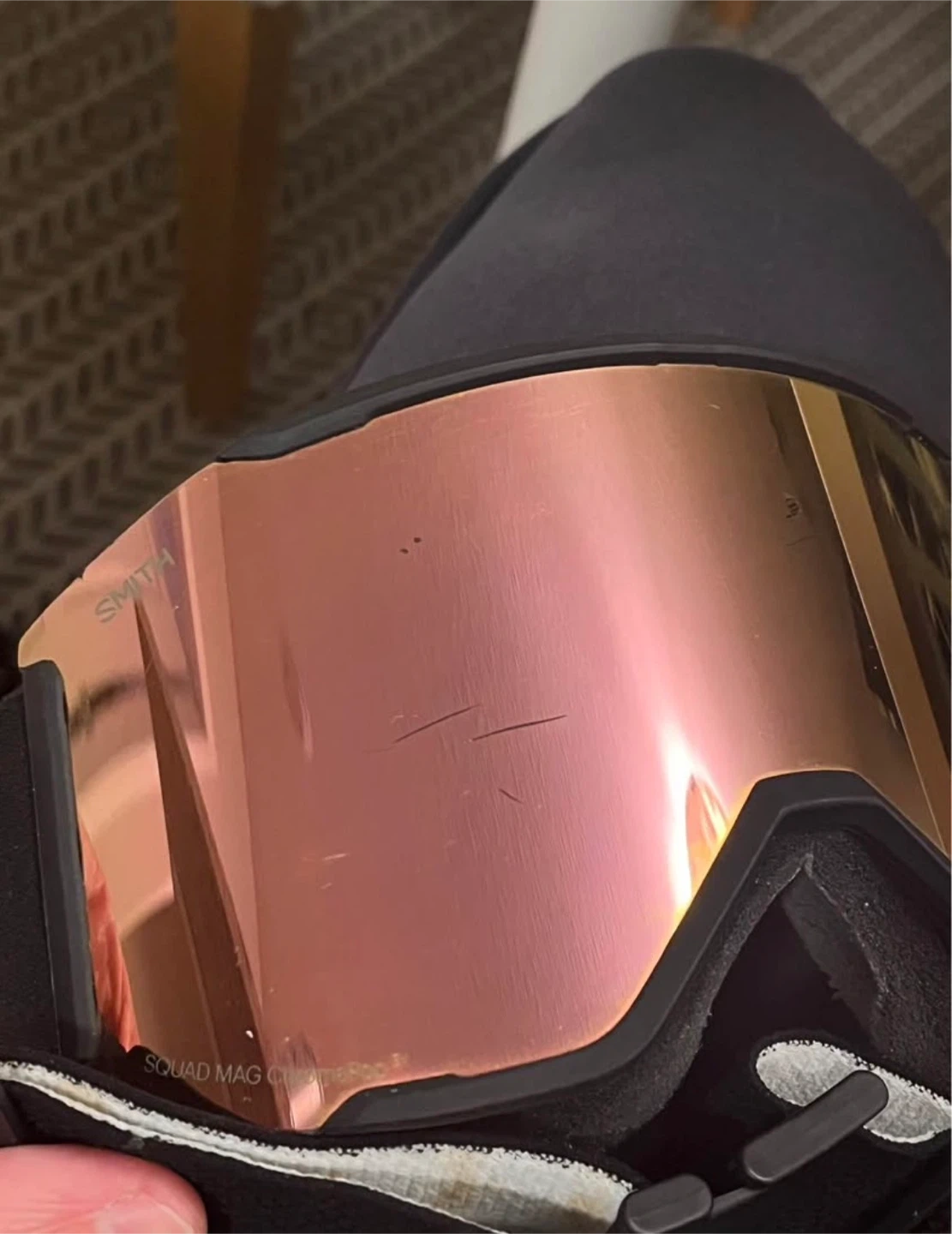 Selling a pair of Smith Squad MAG ChromaPop ski goggles. There are some scratches on one pair of lens. Please see the photos for details. The other pair has no visible scratches.