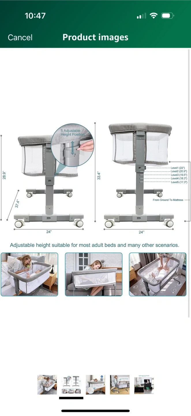 67Gently used and very clean. Perfect for newborns: functions both as a bassinet and portable crib bed. • Brand: TCBunny • 2-in-1 design: bedside bassinet + standalone portable crib bed • Adjustable height & angle – helps with feedings and reflux relief • Four-side breathable mesh panel for visibility & airflow • Comes with easy-fold frame and travel bag for portability • Ideal for age 0-6 months (or as indicated)