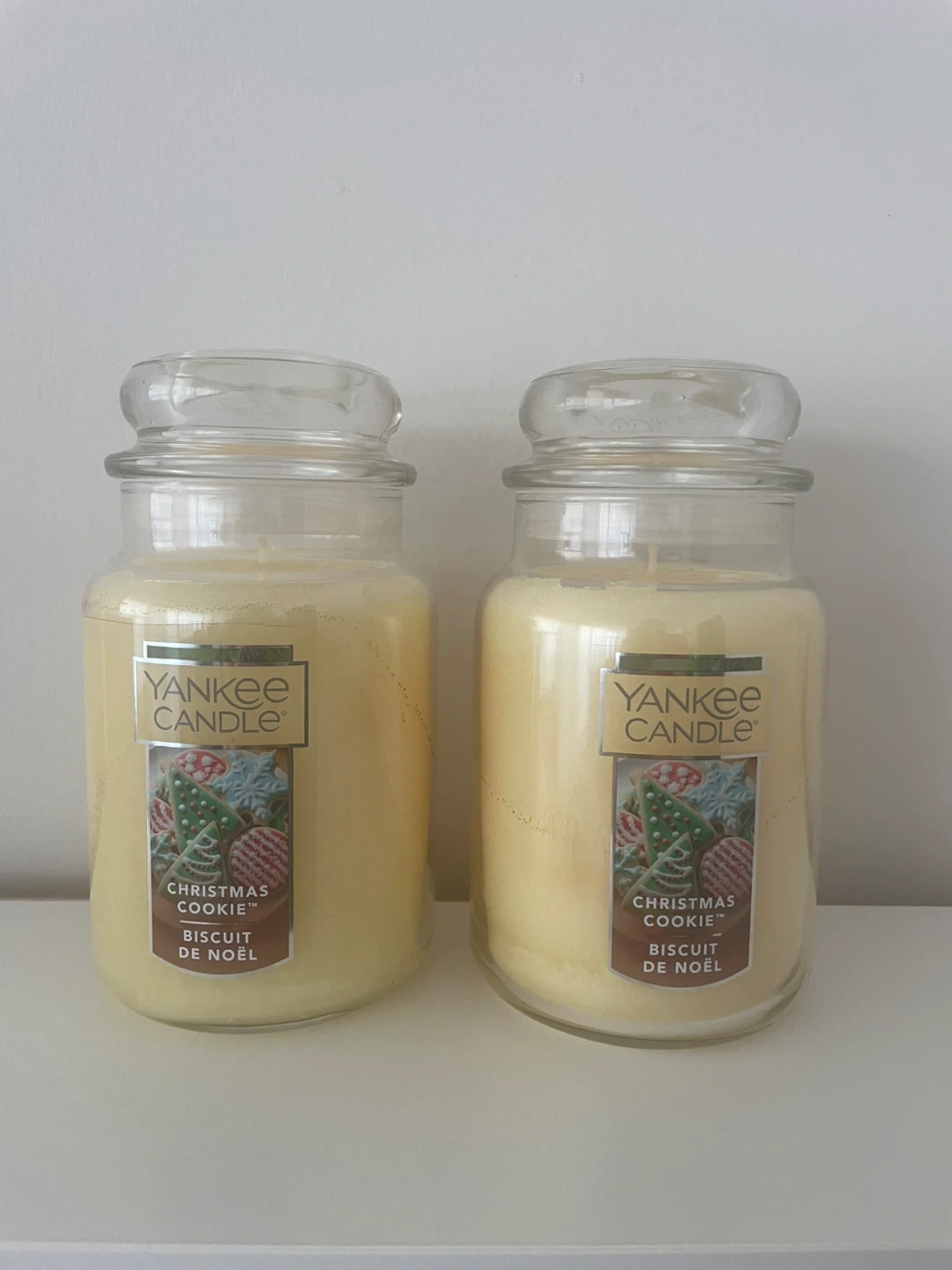 This large jar candle from Yankee Candle features the delightful "Christmas Cookie" scent. It's a 22 oz candle, perfect for bringing a festive aroma to your home. The classic glass jar design includes a lid.