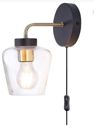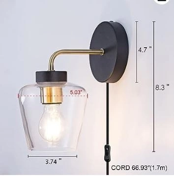 New Plug in Wall Sconce Clear Glass Shade Matte Black Wall