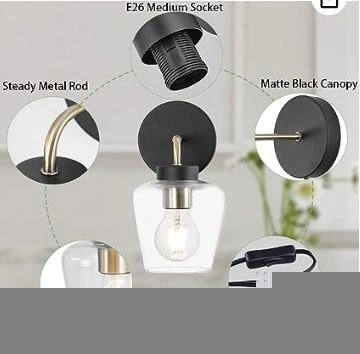 Brand new in box TeHenoo minimalist wall sconce with a clear glass shade and matte black finish. This light fixture is perfect for hallways, bedrooms, kitchens, or dining rooms. It has a vintage-inspired, industrial, and mid-century modern look. The clear glass shade beautifully showcases the bulb (bulb not included). It can be installed with the shade facing up or down. The cord is about 70.9 inches long and includes an ON/OFF switch, making it convenient for bedside use. Compatible with E26 base bulbs (incandescent, LED, or CFL). All mounting hardware is included for easy installation. Cash accepted. Curbside pickup available.