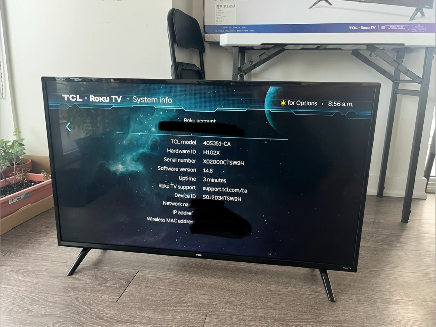 Selling a TCL 40" Roku TV, model number 40S351-CA. It's in great condition and comes with the box. Enjoy streaming your favourite shows and movies! Well just used 6 months i am moving another province all ok no problem on it and infact it is used one hour weekday.