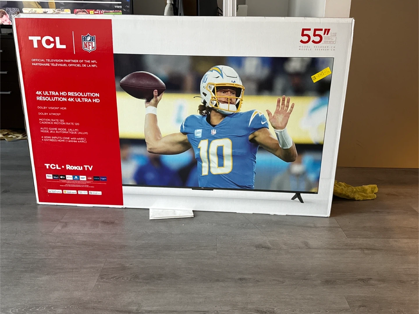 18Selling a TCL 55" 4K Ultra HD Resolution Roku TV. It features Dolby Vision HDR and a 120 Motion Rate. Model number is 55S450R-CA. Box included!