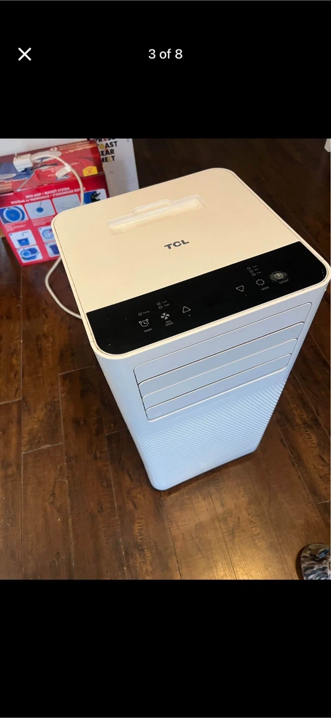 76Selling a TCL portable air conditioner in white. It comes with the box and all included components. Ready to keep you cool this summer! I bought it this summer because of some guests came over. It’s like new. I have its box and everything.