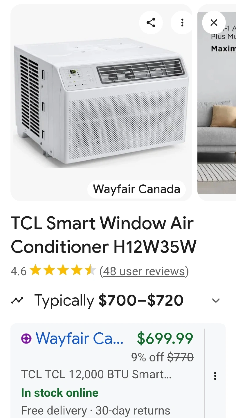 Selling a TCL Smart Window Air Conditioner, model H12W35W. It's in great shape and ready to keep you cool this summer! Retails for around $700.