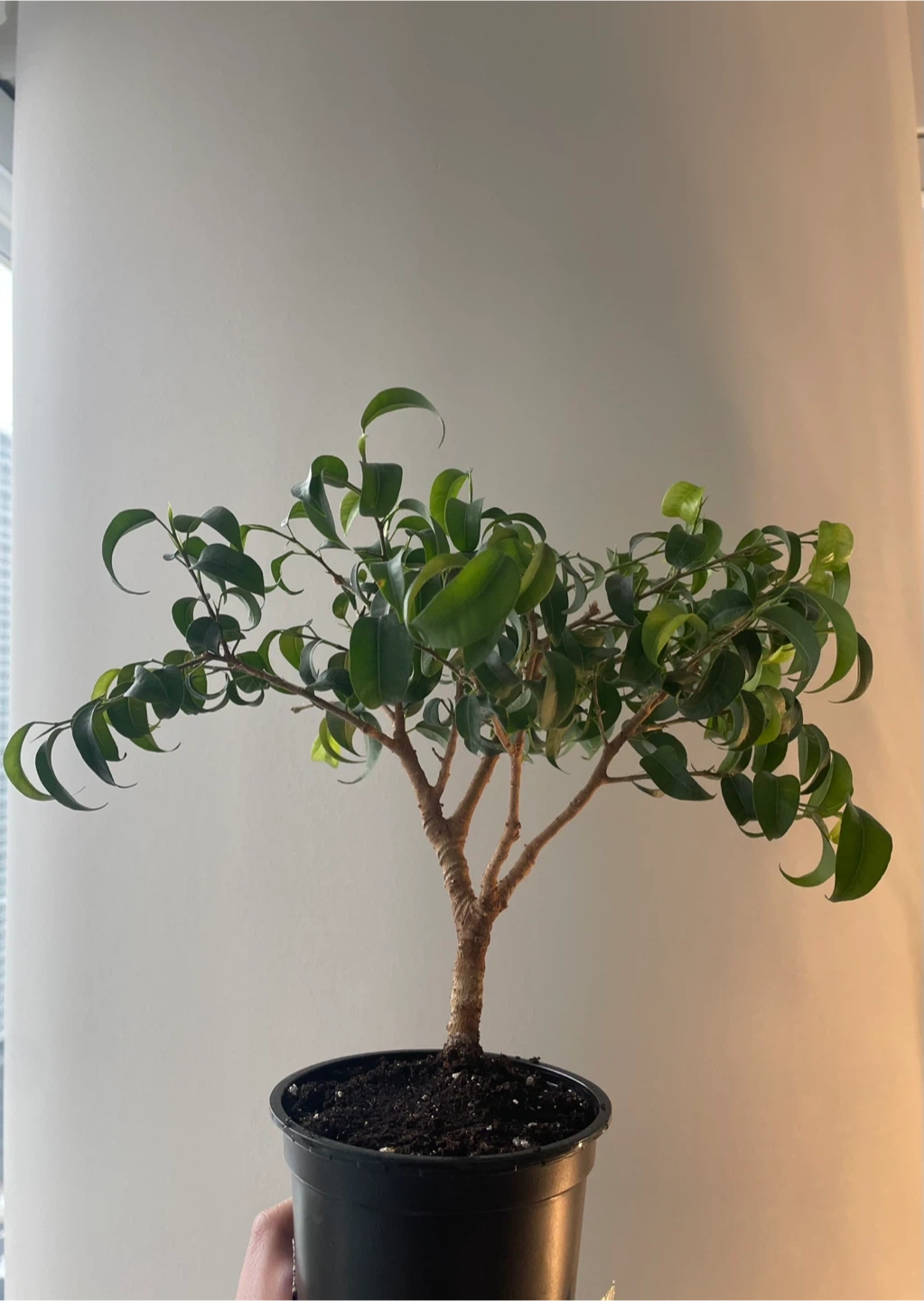 This is 2 small Ficus Benjamina potted in a blue plastic container. They come from a mother bonsai tree in the second picture sold separately.