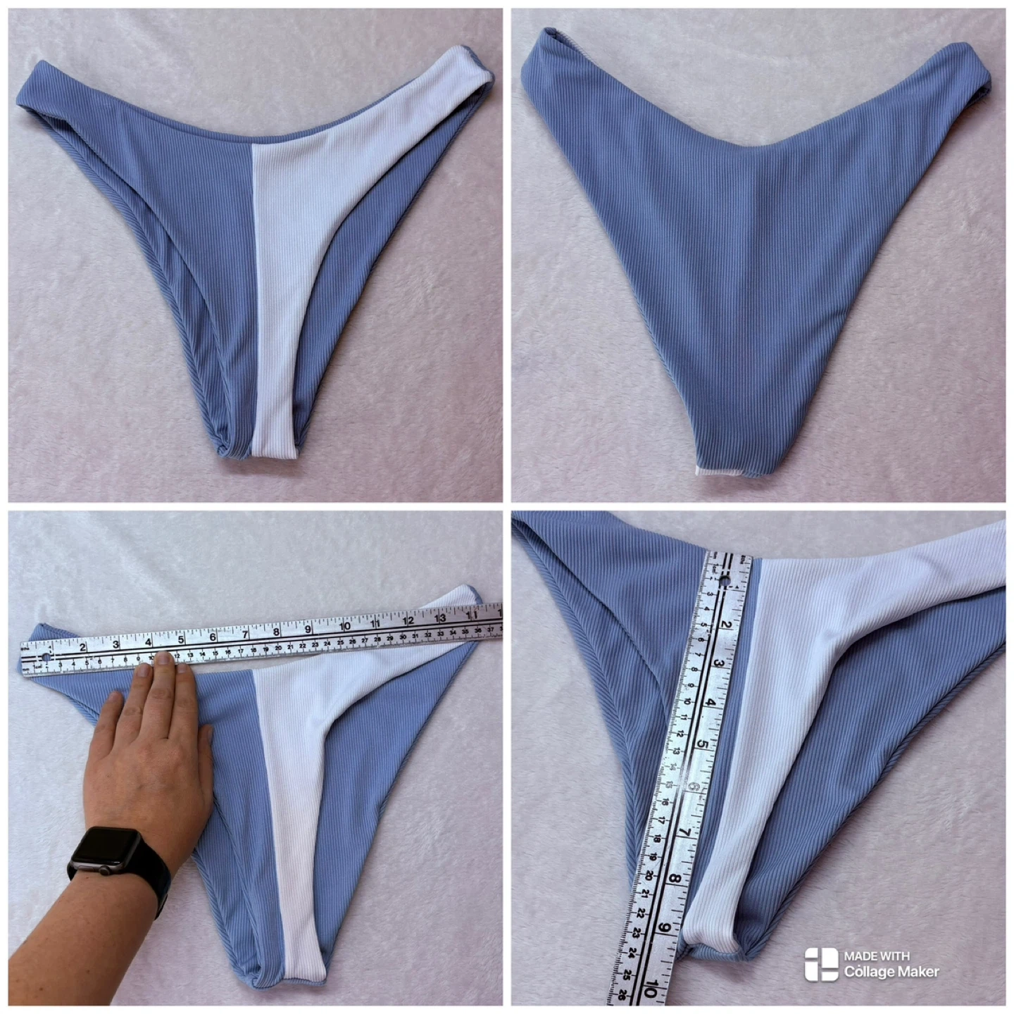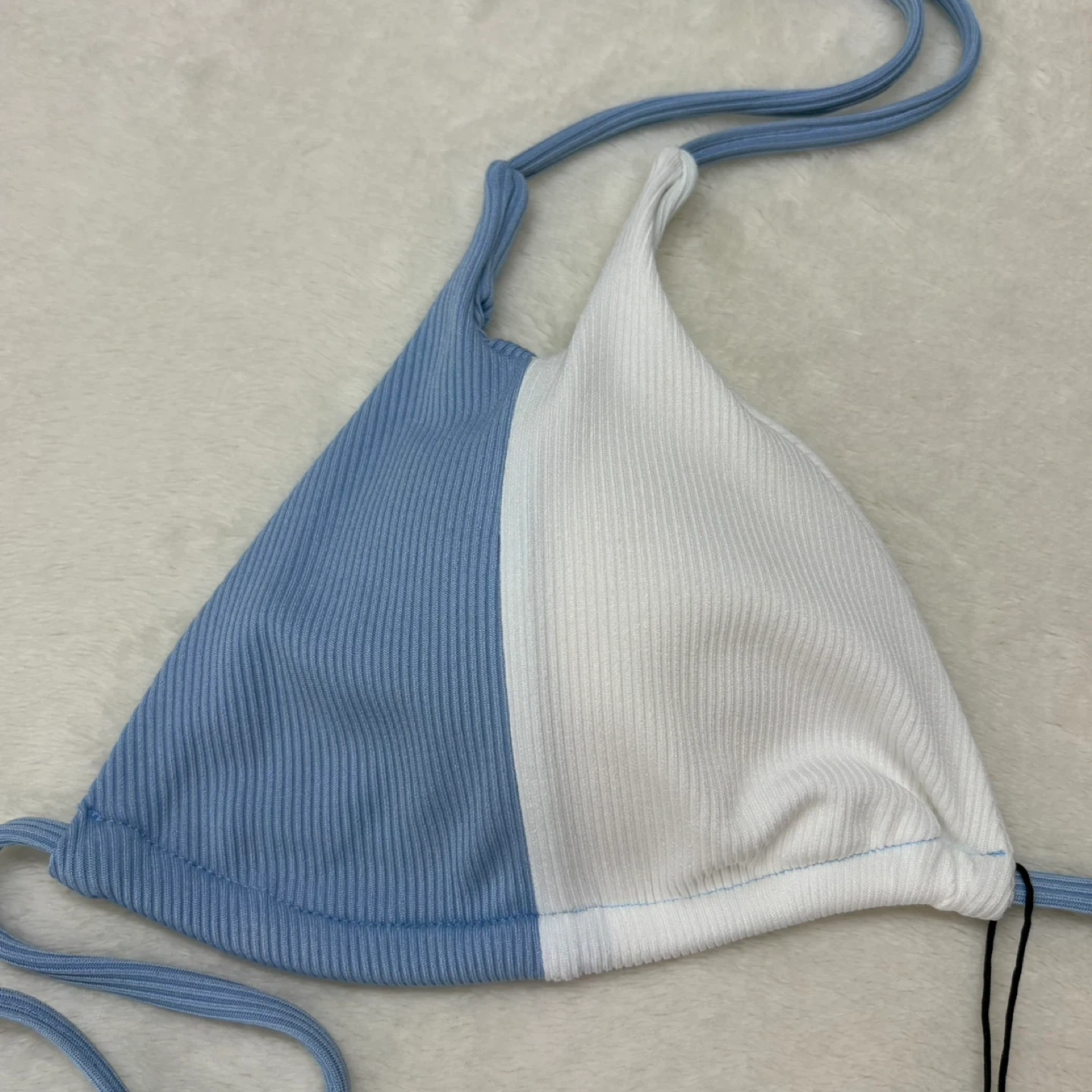 zaful, bikini, swimwear, colorblock, ribbed, triangle, highcut, highrise, blue, white, swimsuit, medium