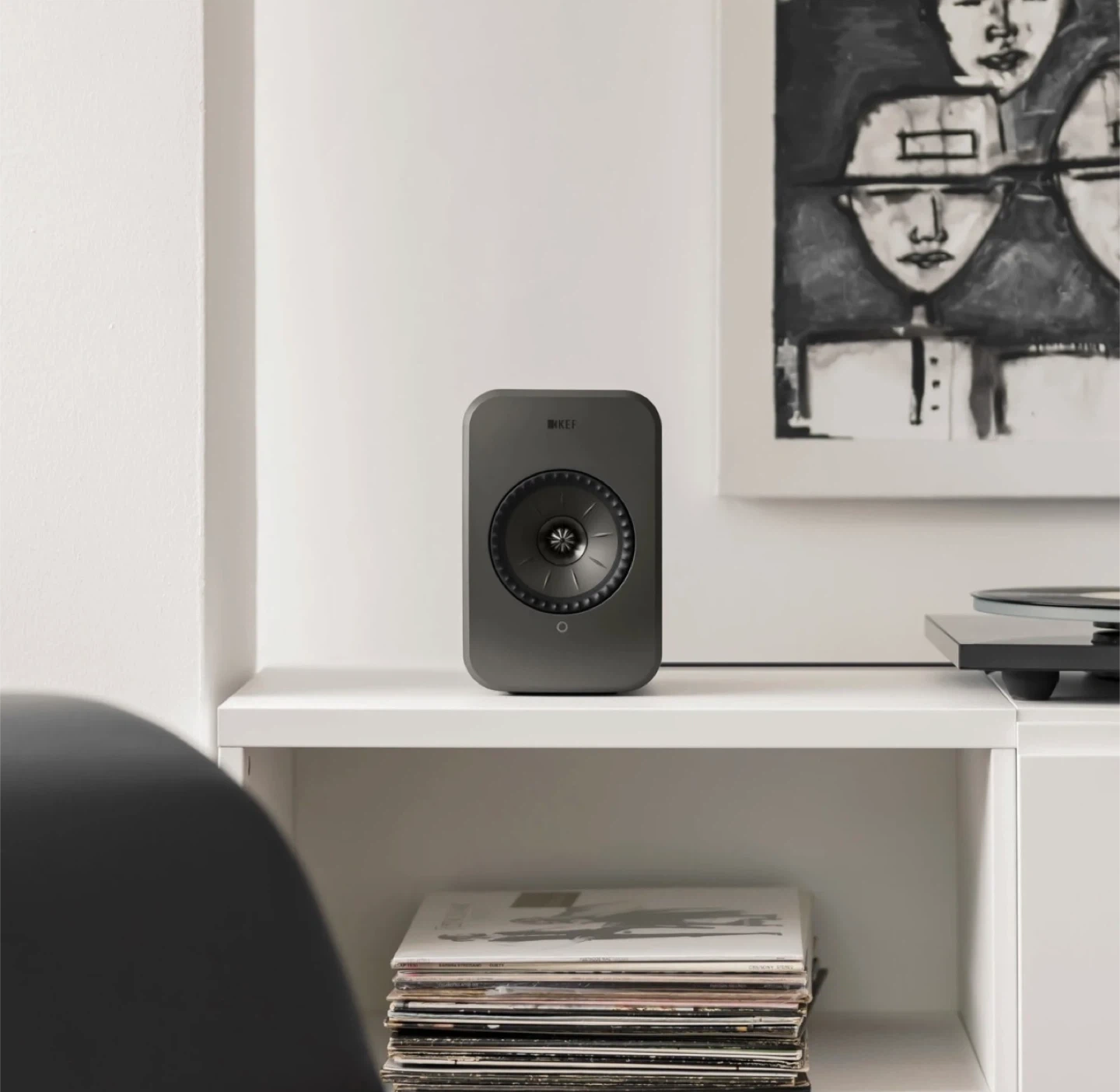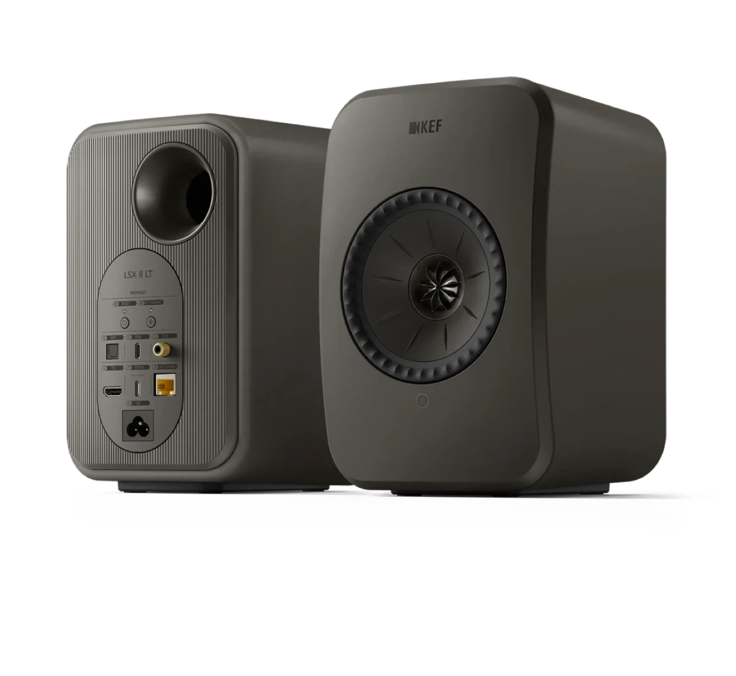 KEF LSX II LT Wireless HiFi Speakers in Graphite Grey colour tone.