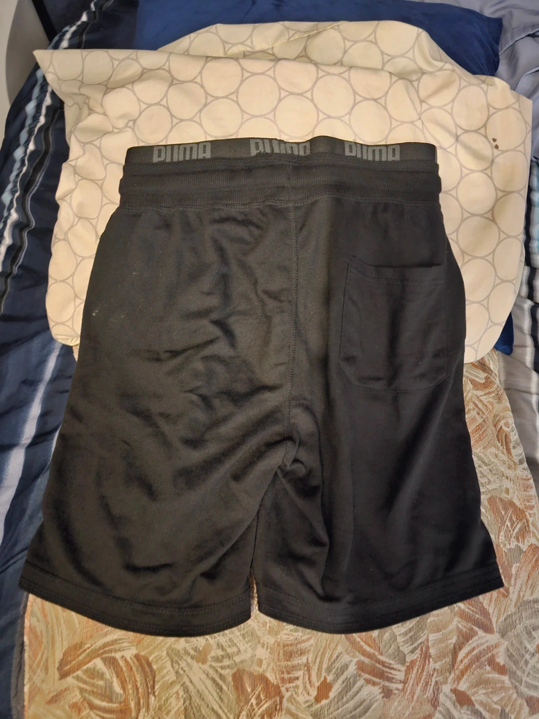 These are black Puma athletic shorts with a drawstring waist and pockets. They're made from a soft, breathable material. Size is small, US/CA S.